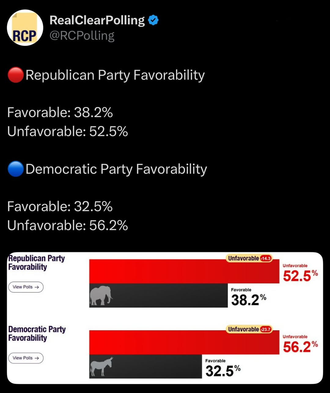📊 Republican & Democratic Parties Are Both Horribly Unpopular