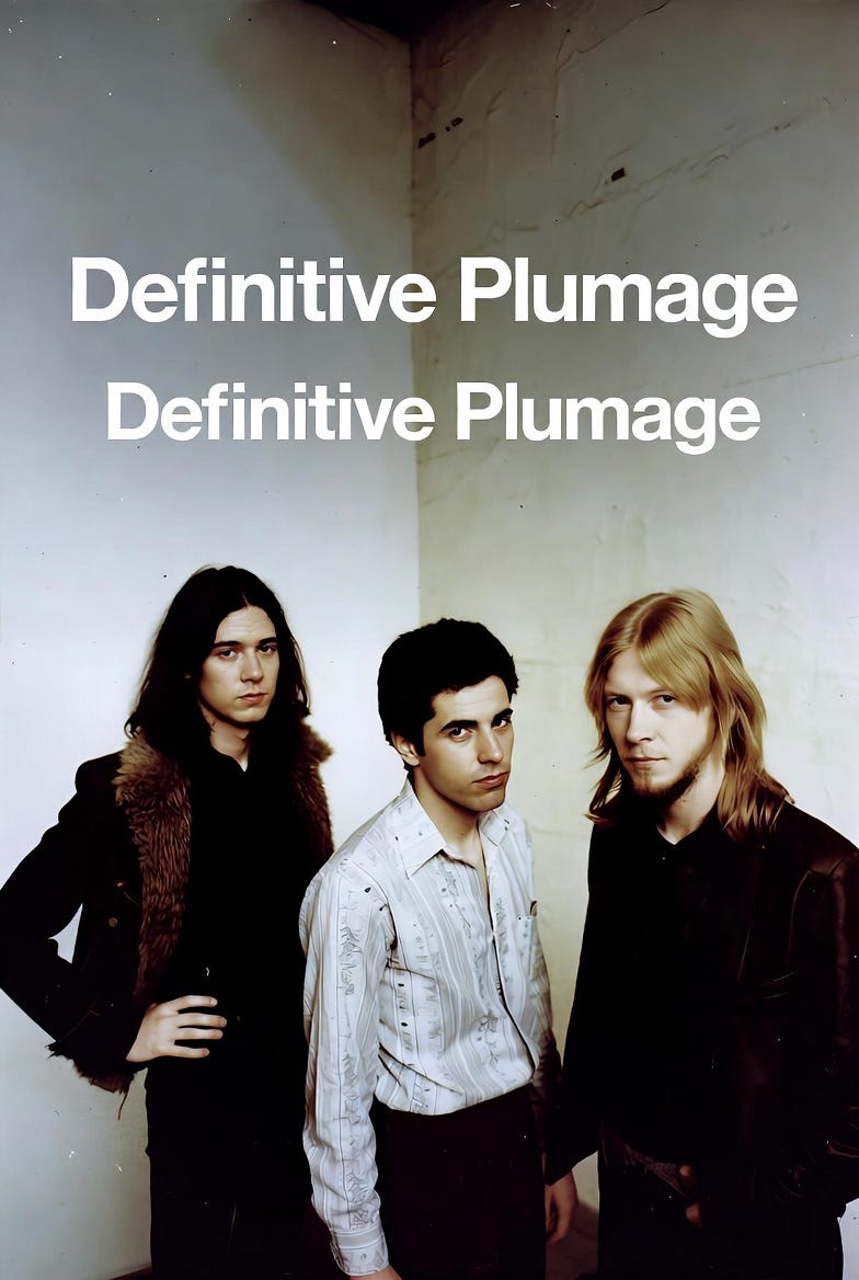 I asked my favorite LLMs to make an album cover for a band called “Definitive Plumage”. Here’s what I got: