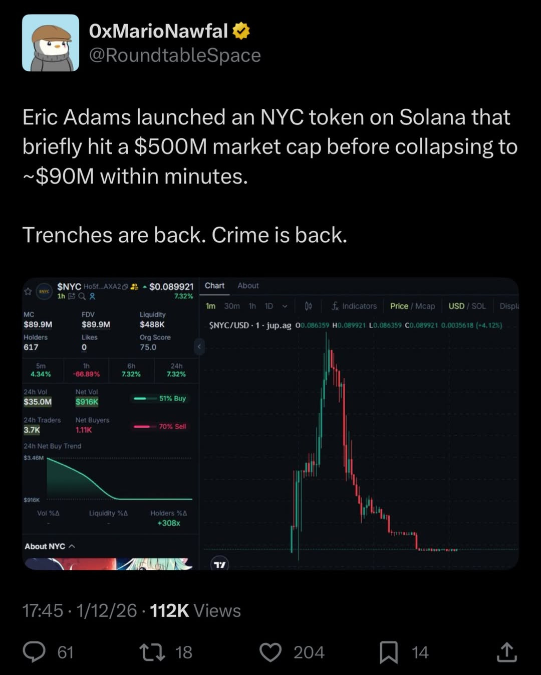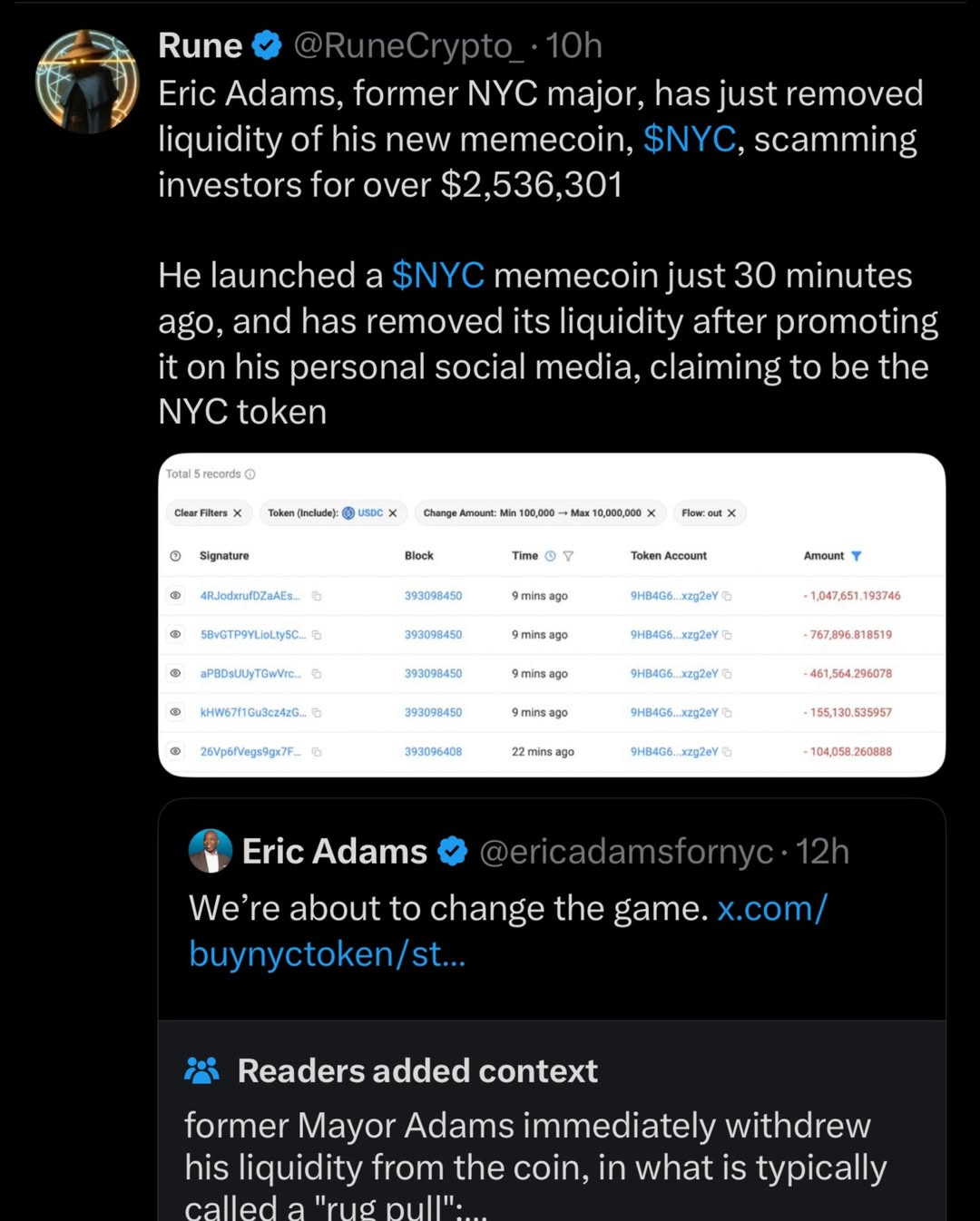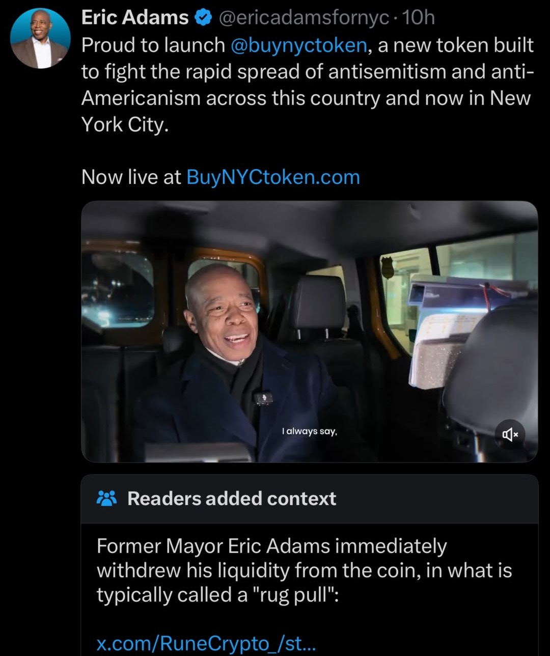 💰 Former NYC Mayor Eric Adams Launches Meme Coin and Immediately Scams Everyone (allegedly)