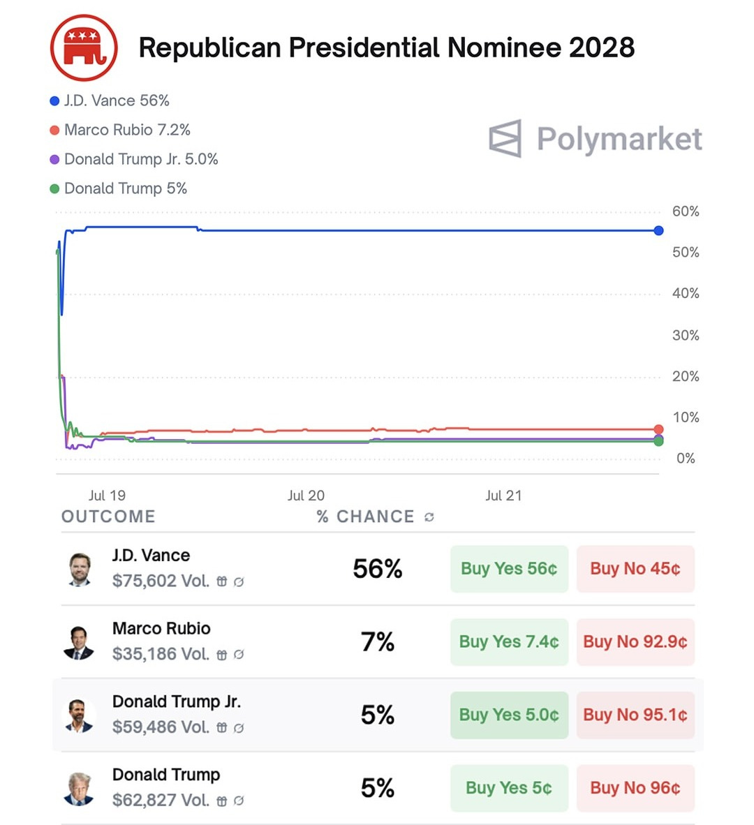 🔮 Polymarket Predictions for the 2028 Presidential Race