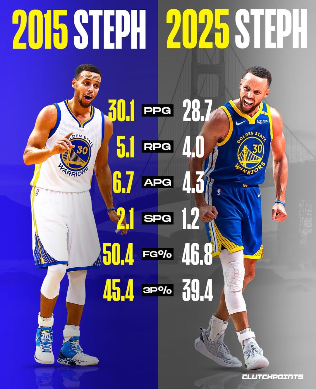 โน๏ธโโ๏ธ 2015 Steph vs. 2025 Steph