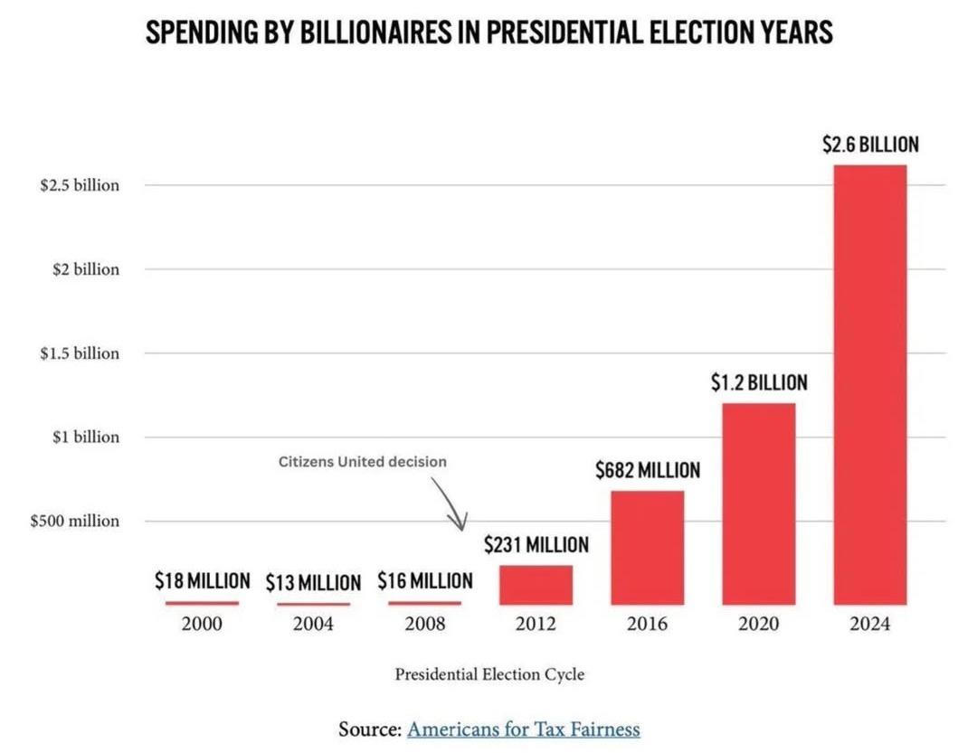 PLUS, billionaire spending in presidential election years is up 16,000% since 2008.