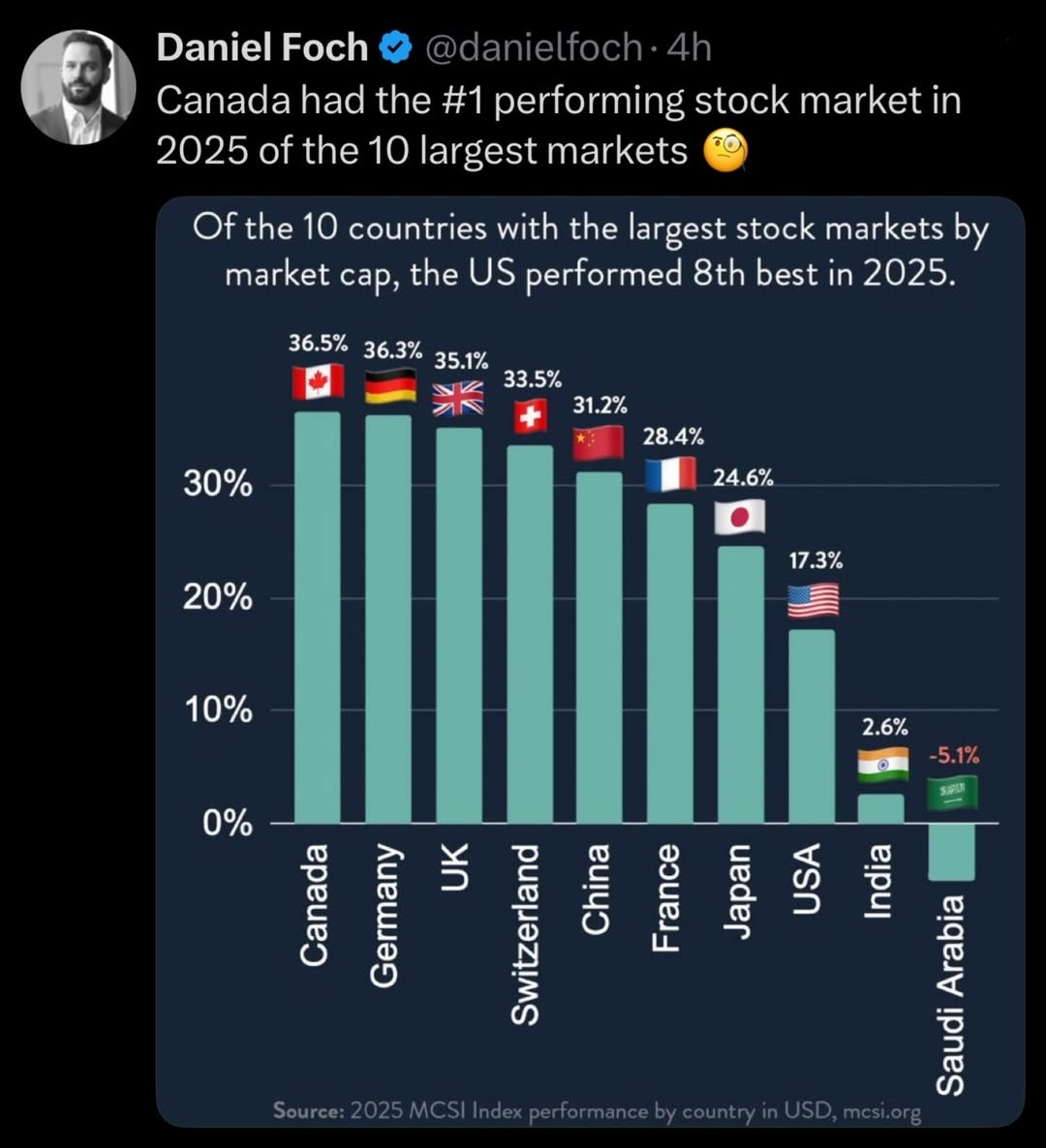 ๐จ๐ฆ Canadian Stock Market Ripped Harder Than Anyone in 2025