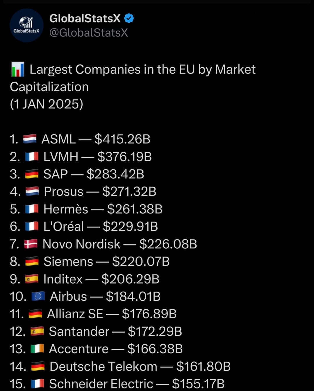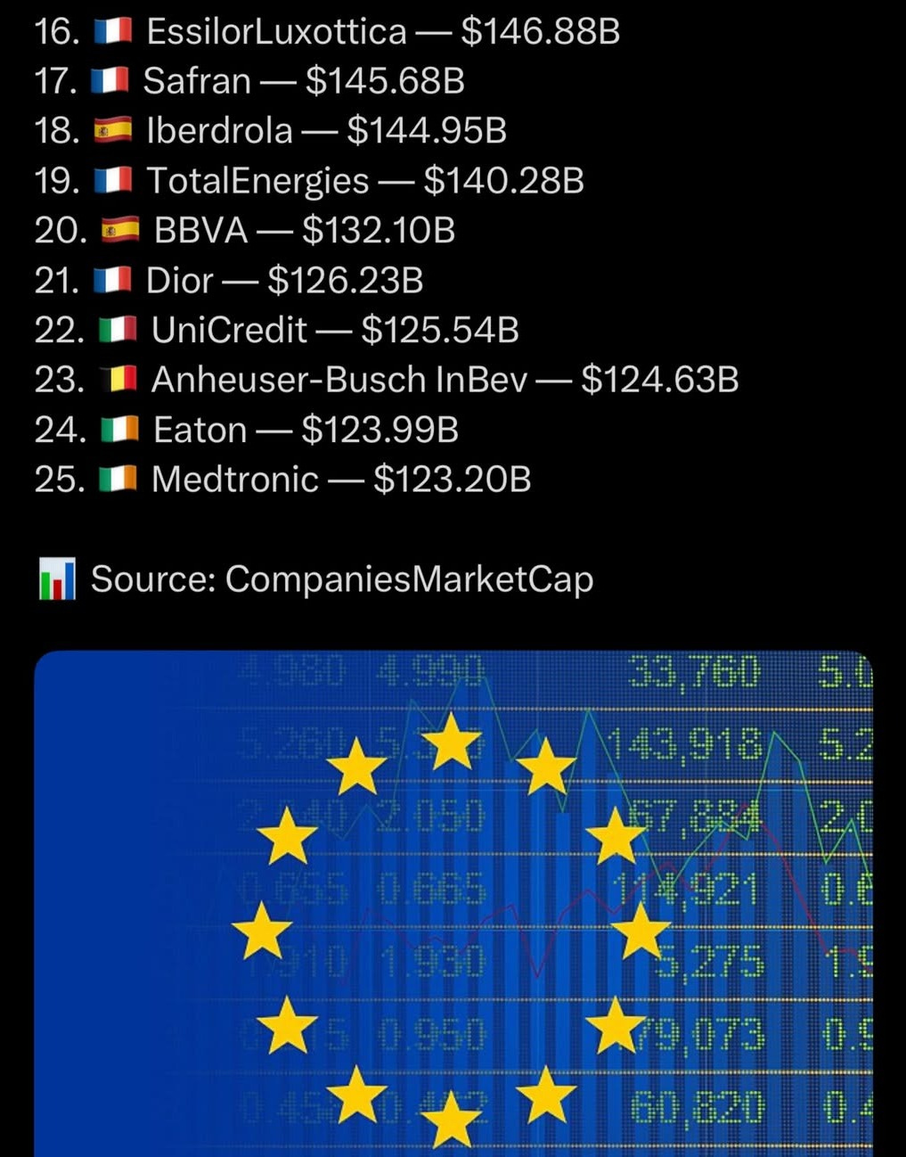 ๐ช๐บ 25 Largest Companies in the EU By Market Cap