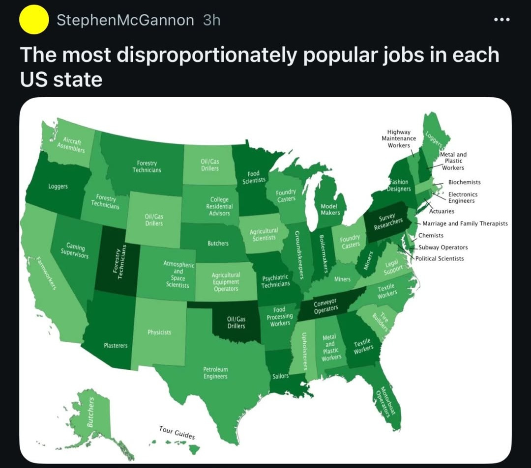 ๐บ๐ธ The Most Disproportionately Popular Jobs in Each US State