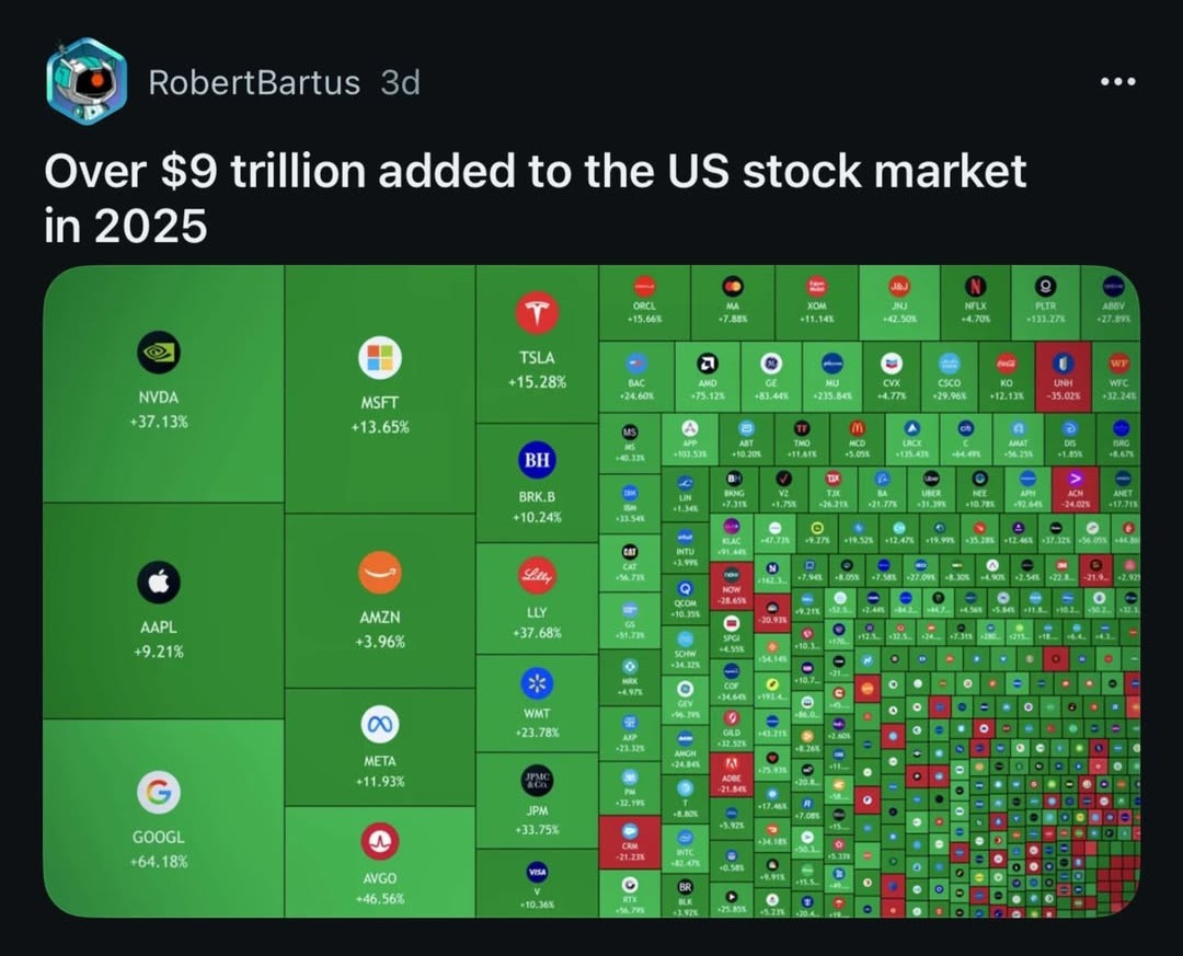 ๐ฐ Over $9 Trilly Added to the US Stock Market in 2025