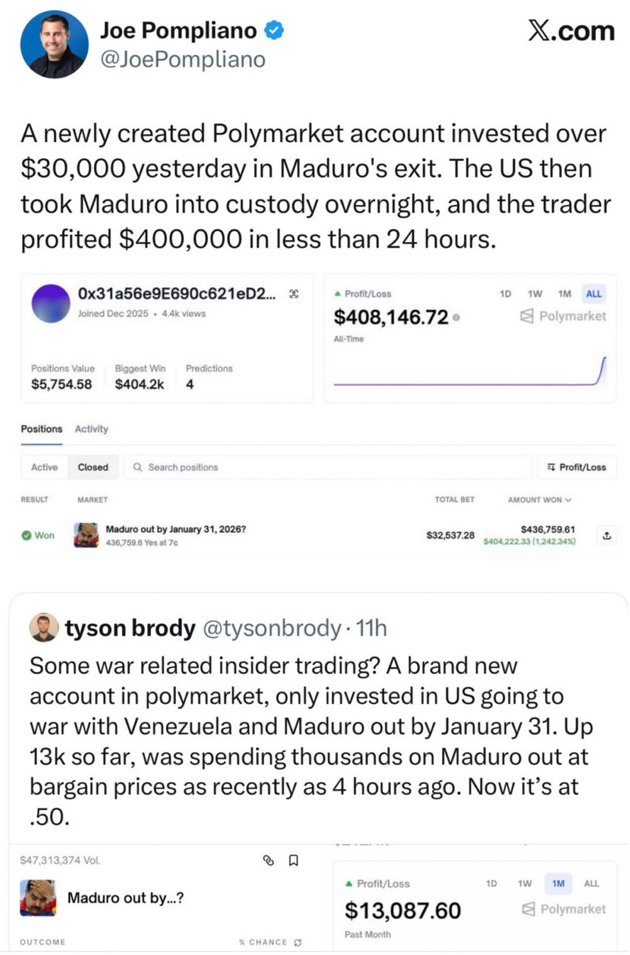 ๐ Polymarket User Accused of Insider Trading on Maduro Attack