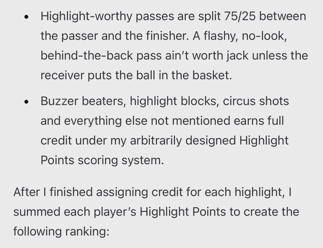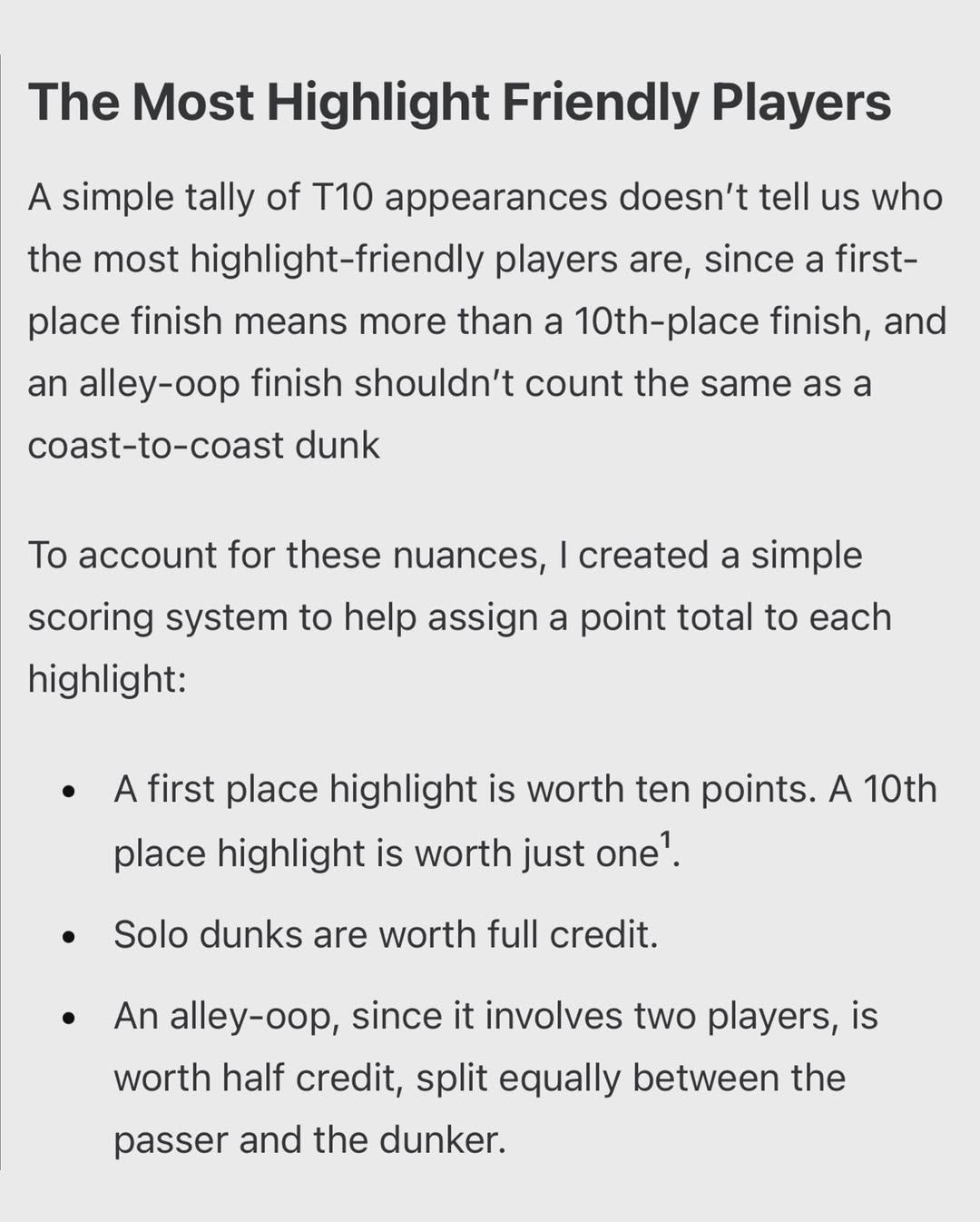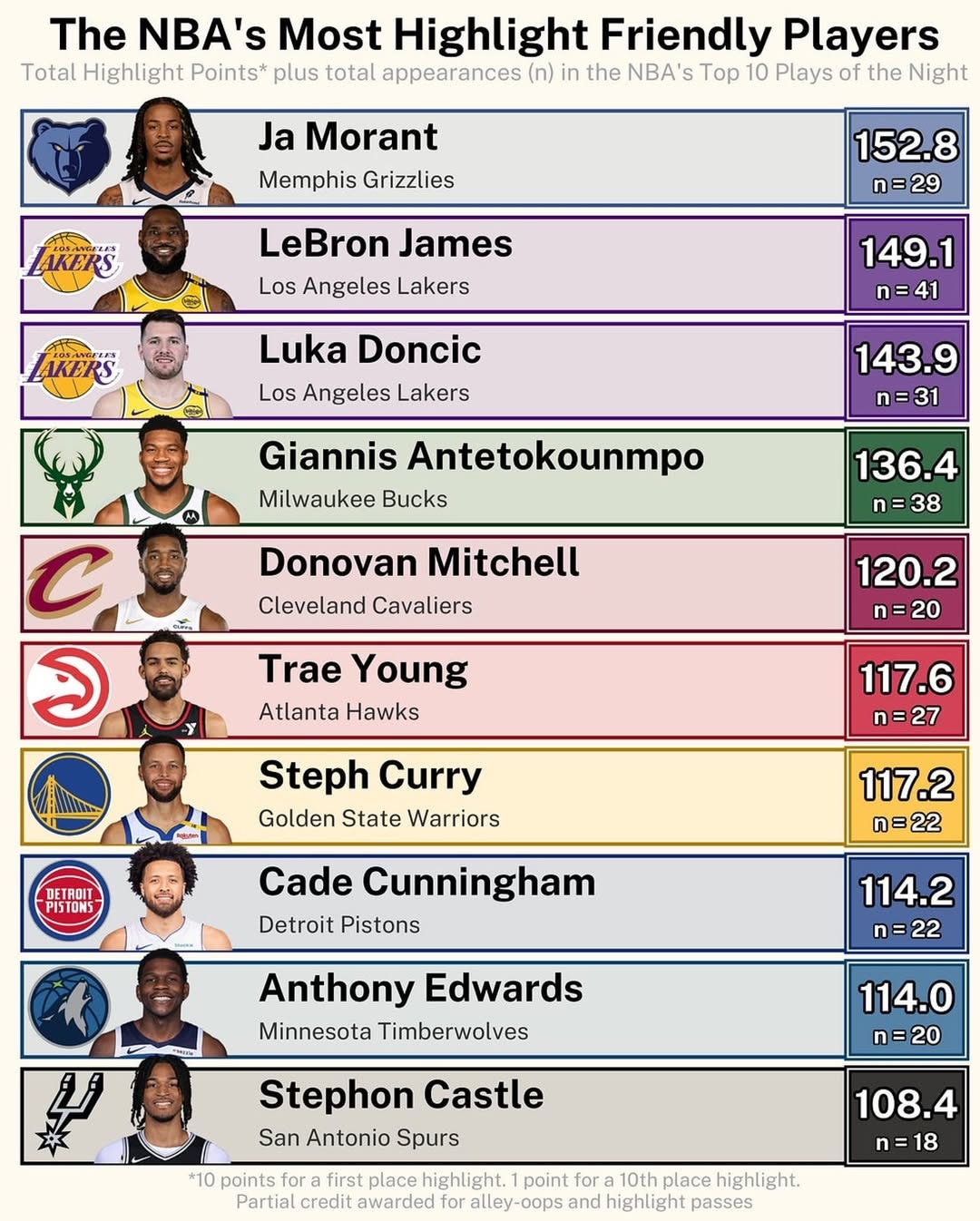 I don’t understand how Giannis has the 4th most highlights. He’s a great player, but not exactly a human highlight reel (imho).