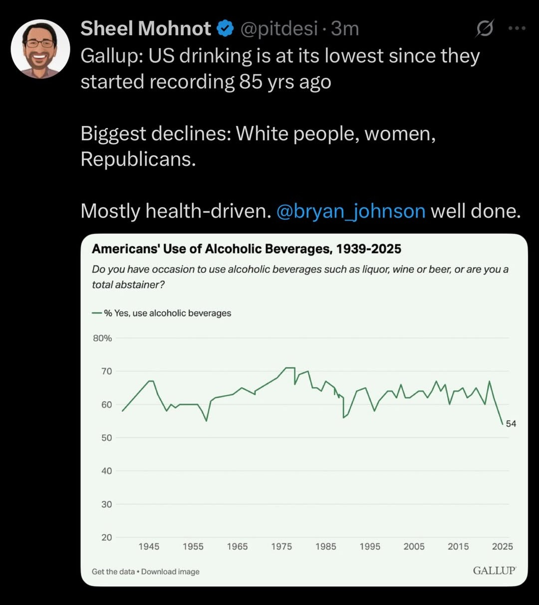🍻 U.S. Alcohol Consumption Hits 85-Year Low