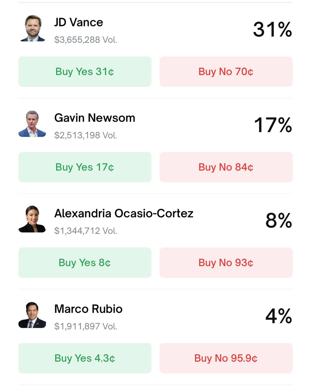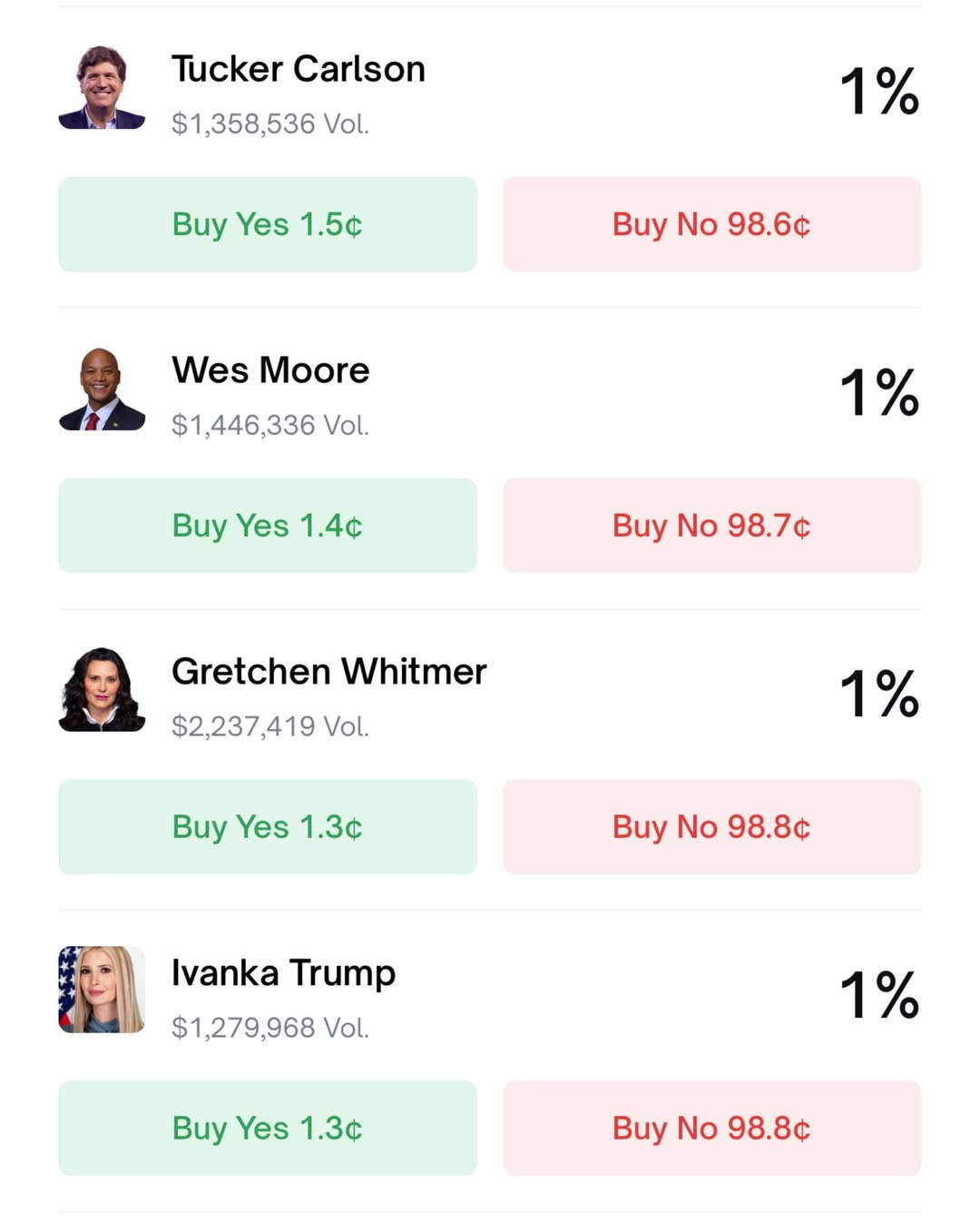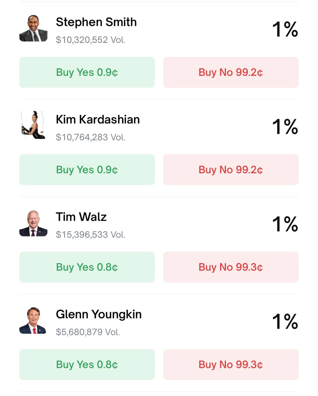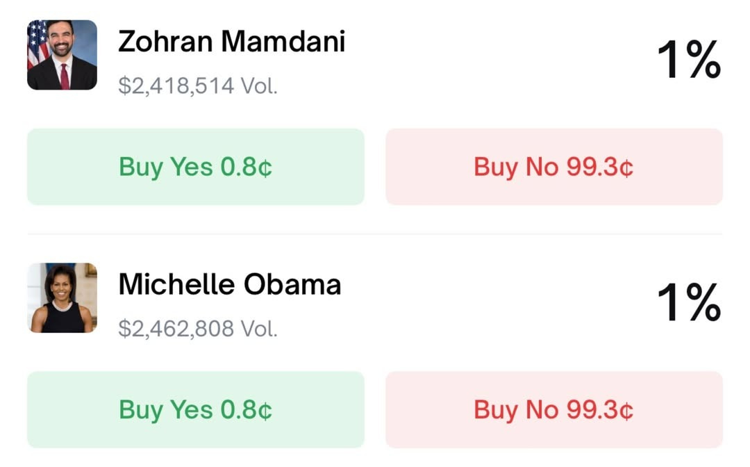 Here are the numbers from Polymarket: