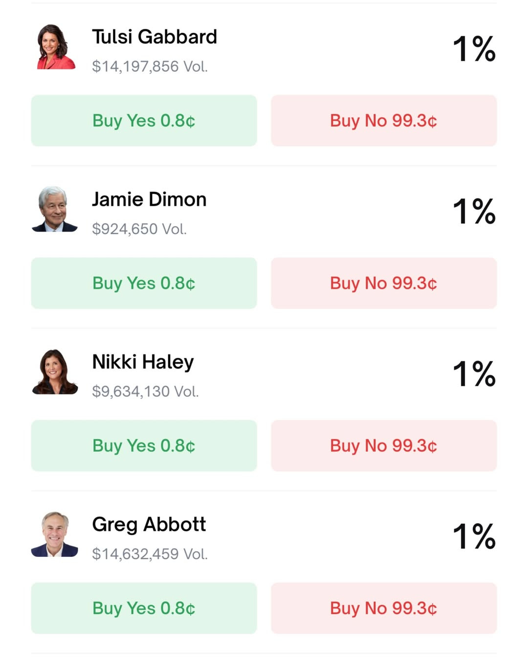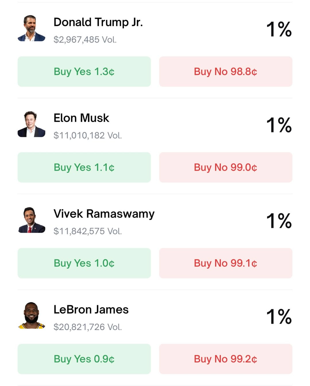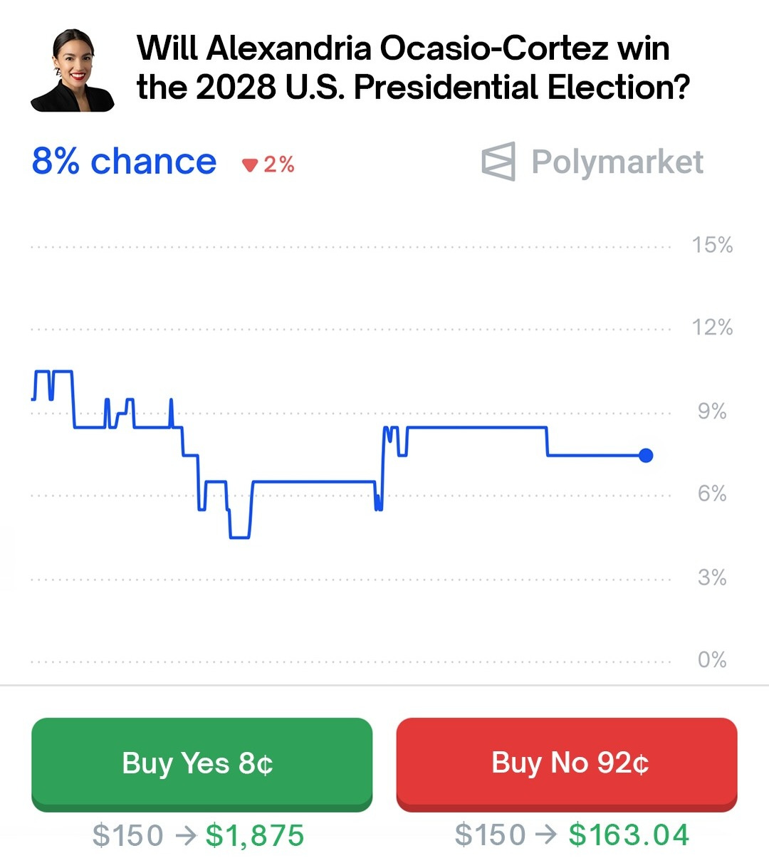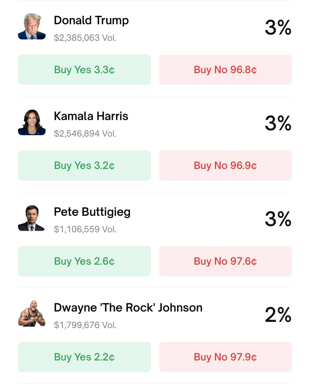 Here are the numbers from Polymarket: