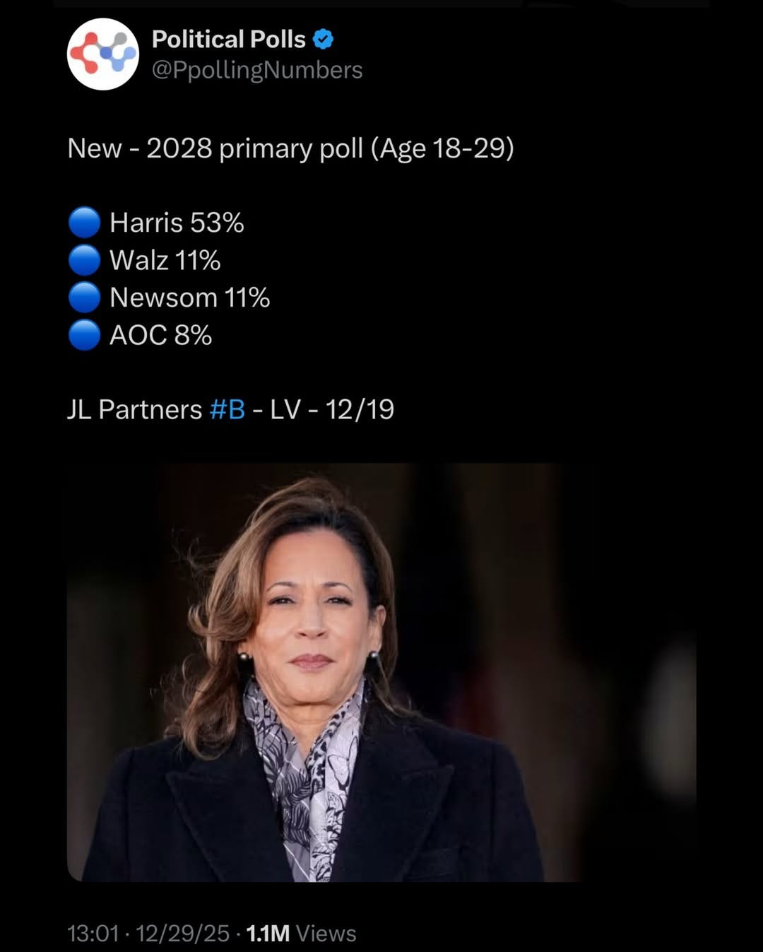 📊 Meanwhile, 2028 Democratic Primary Poll Has Kamala Harris on Top