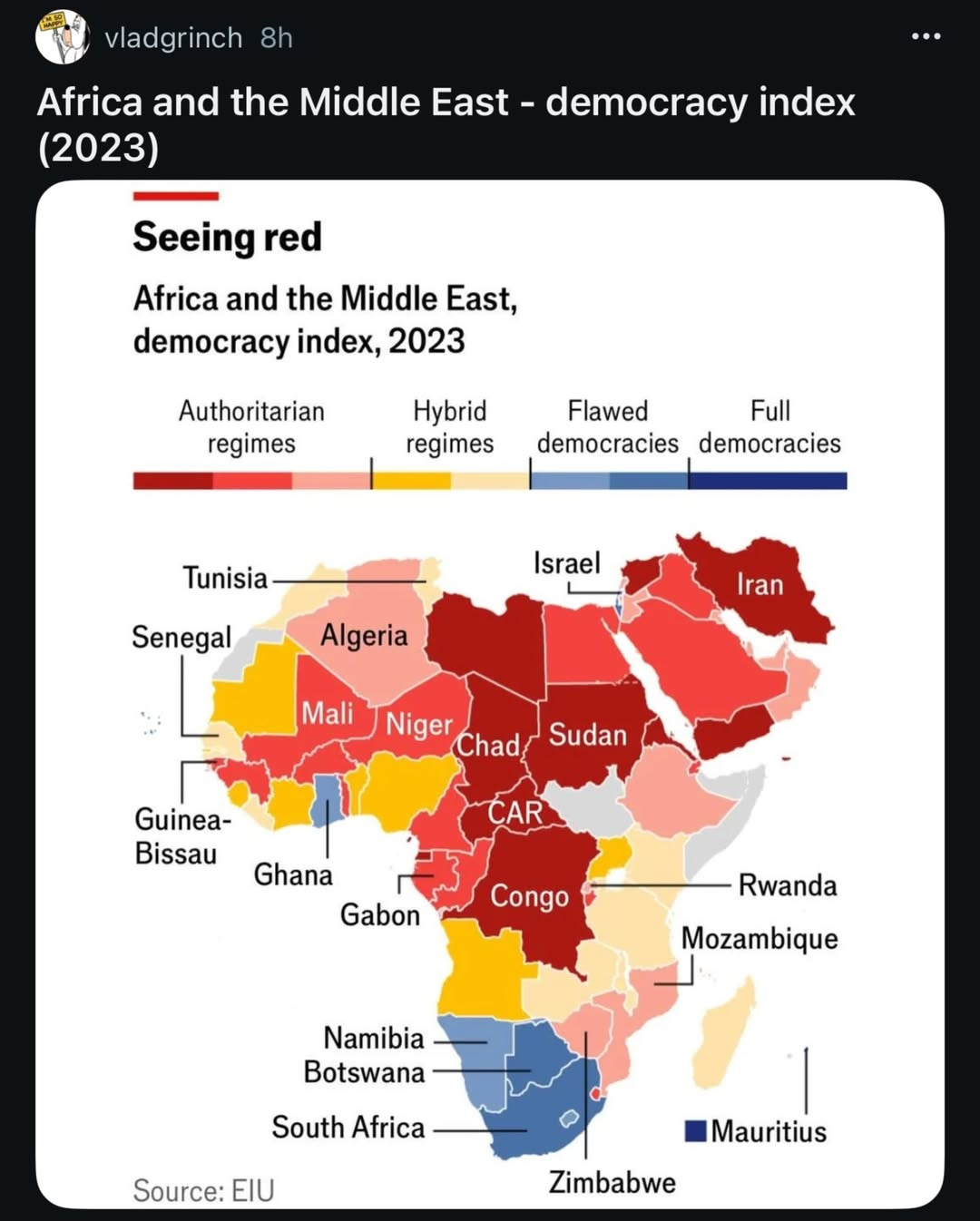 🗺️ The Status of Democracy in Africa and the Middle East (as of 2023)