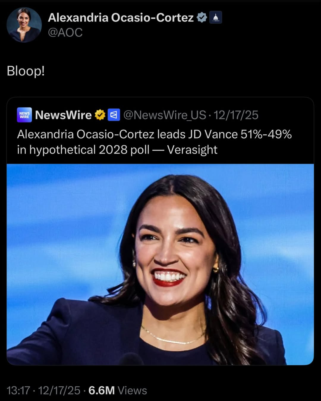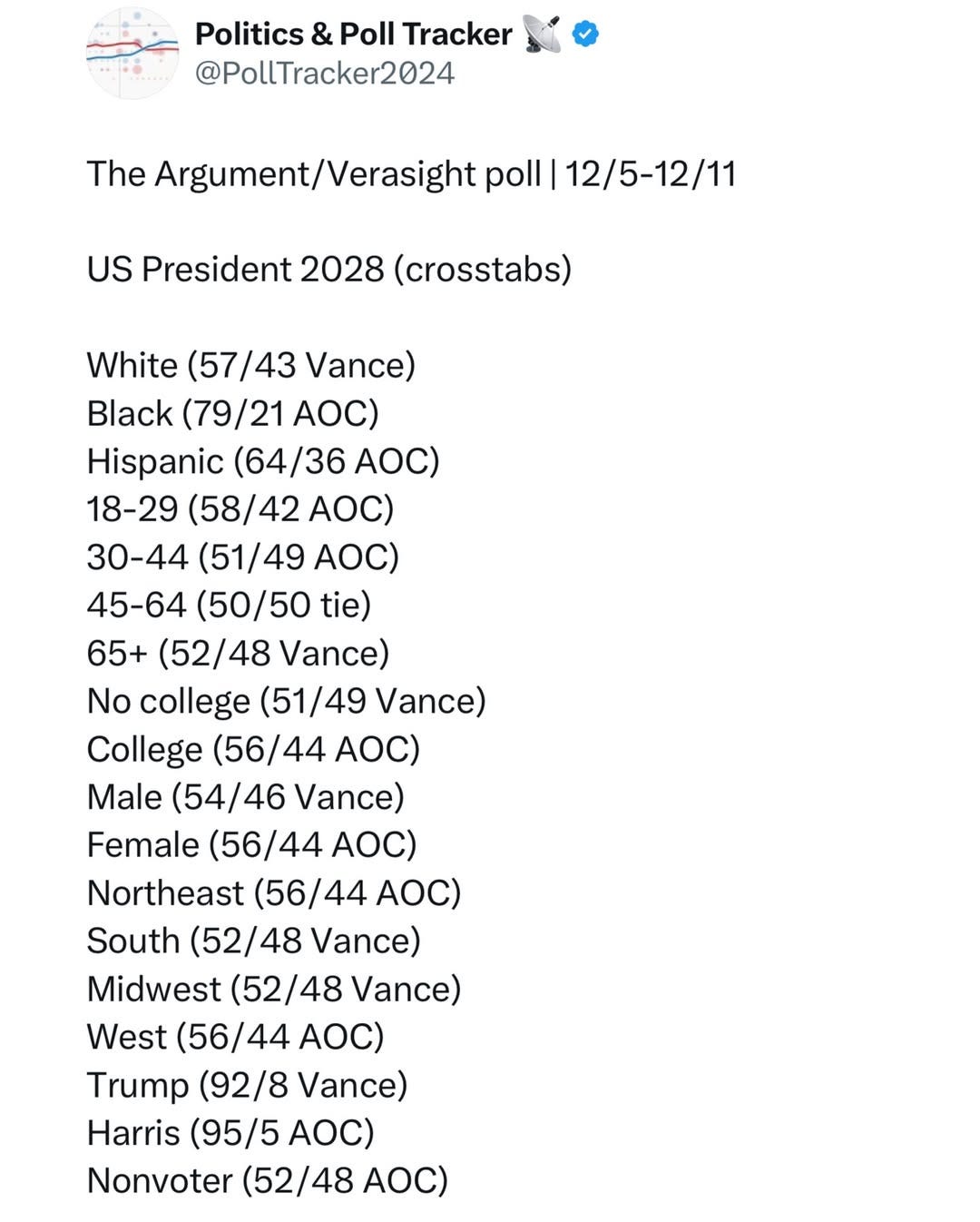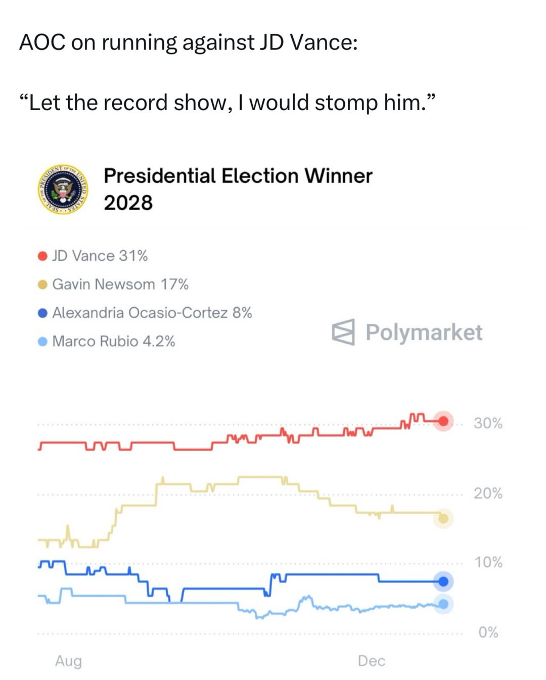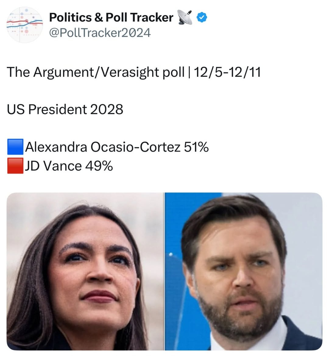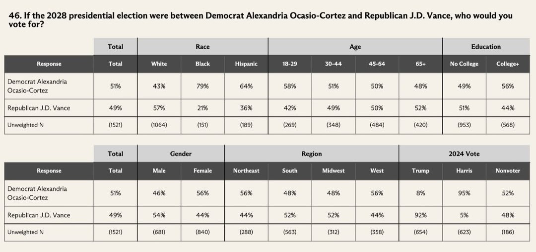 🇺🇸 AOC Beats JD Vance in 2028 Poll