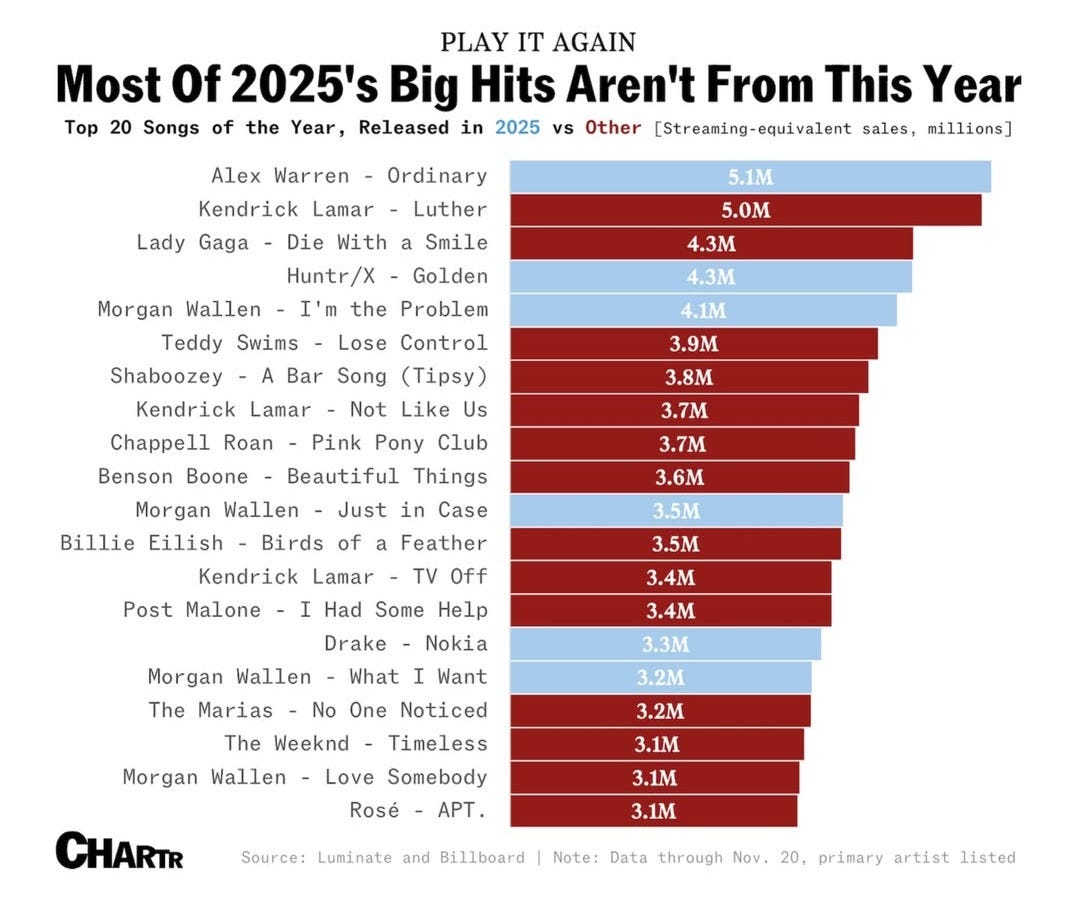📊 Most of 2025’s Big Hits Aren’t From This Year