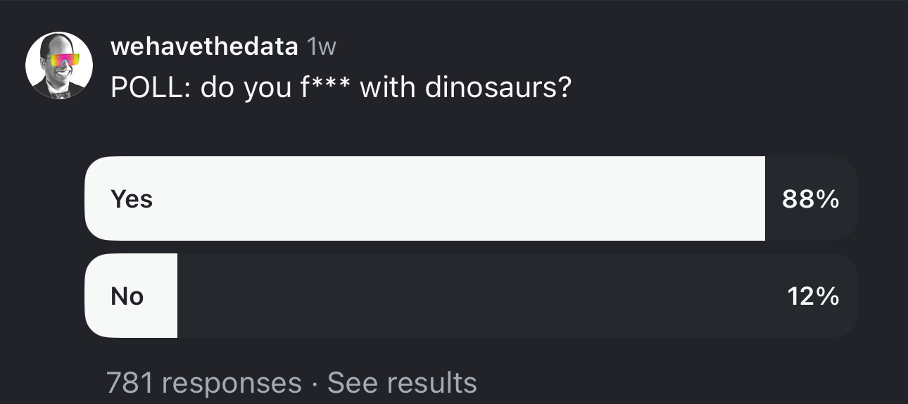 We ran a poll on IG asking our followers, “do you f*** with dinosaurs?”