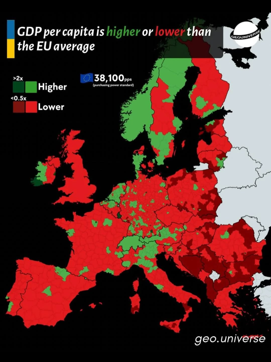 🇪🇺 Where GDP Per Capita is Higher or Lower than EU Average