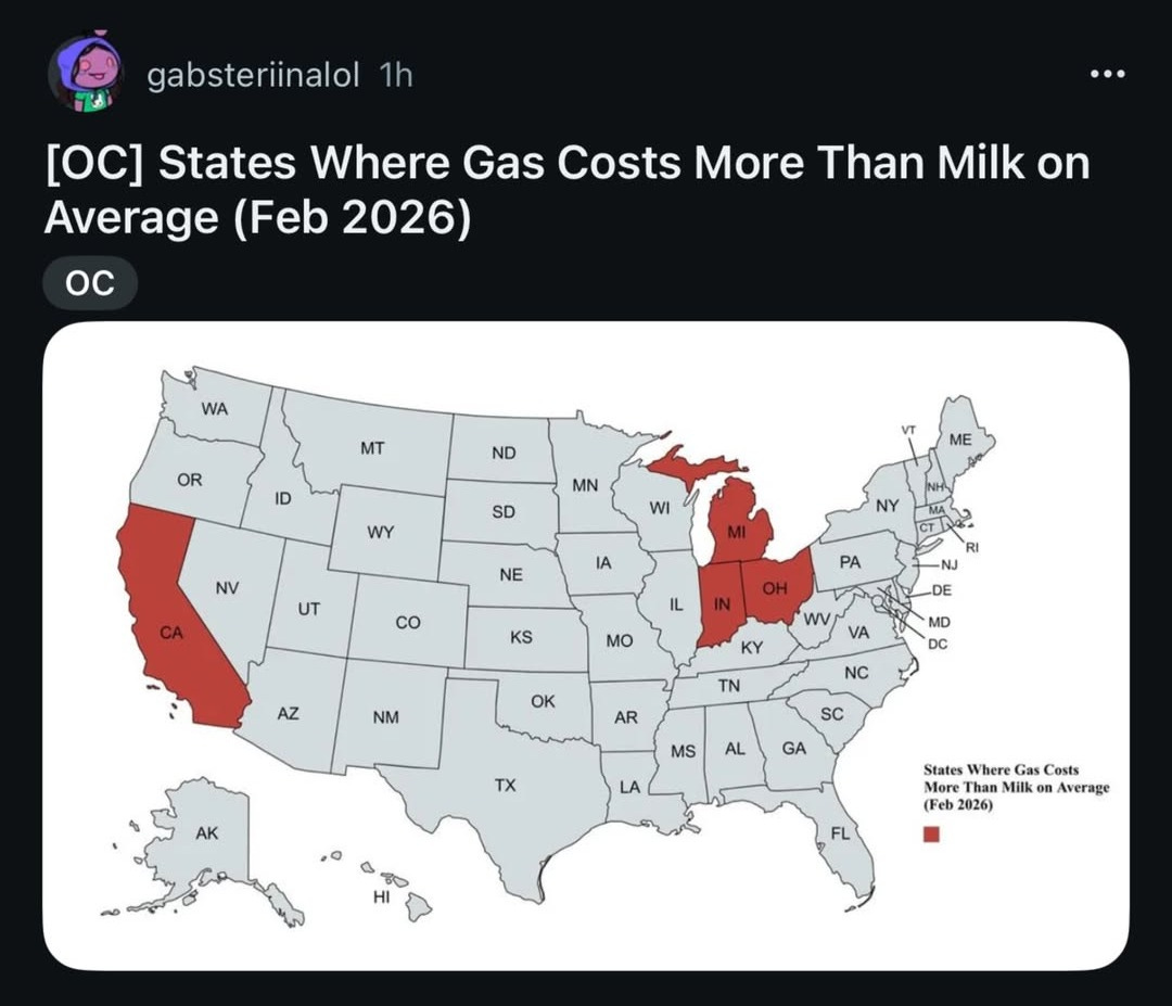 🥛 Where Gas Costs More Than Milk