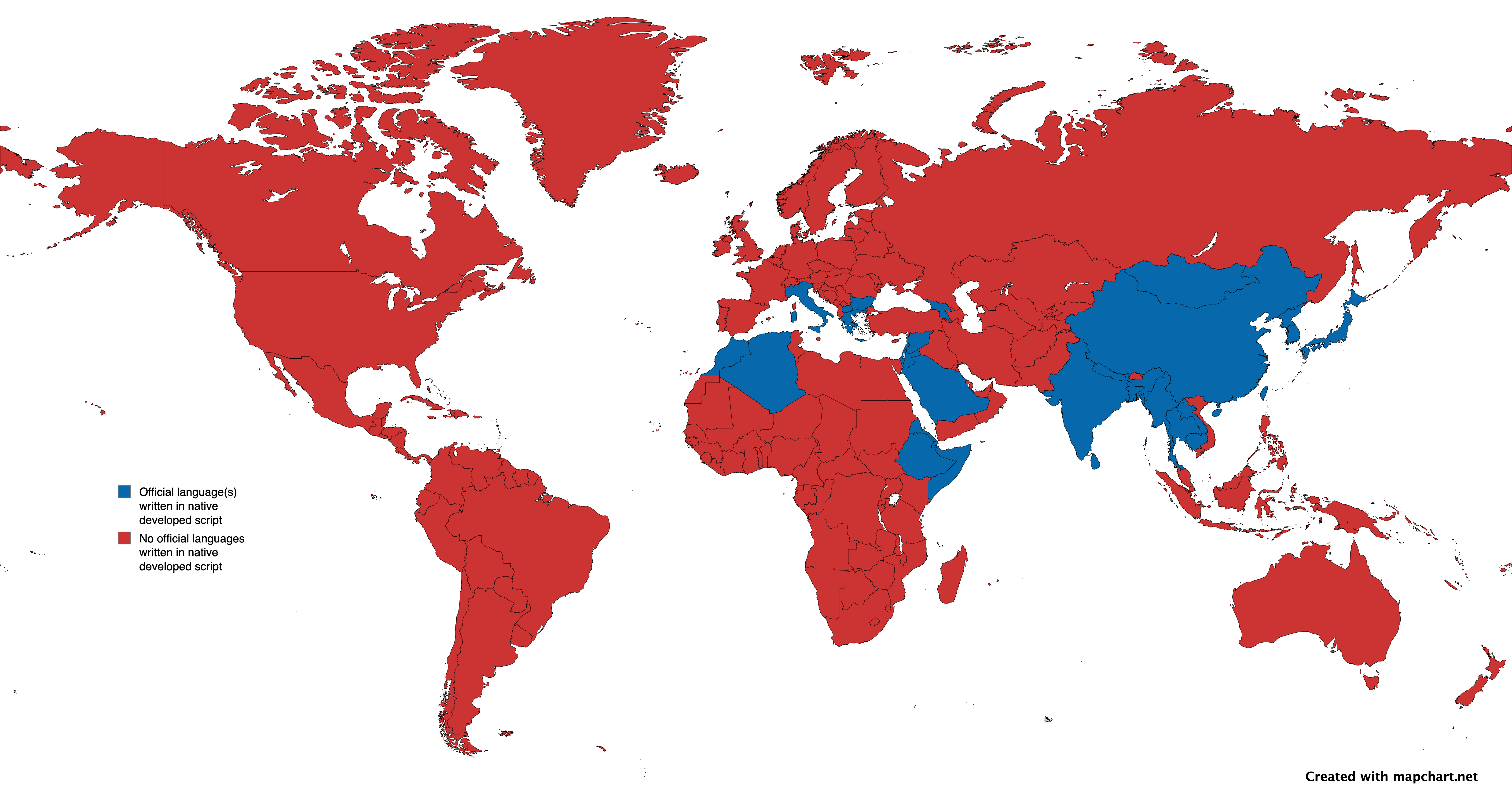 ㊗️ Countries Where the Official Language is Primarily Written in a Script Developed Within Modern-Day Borders