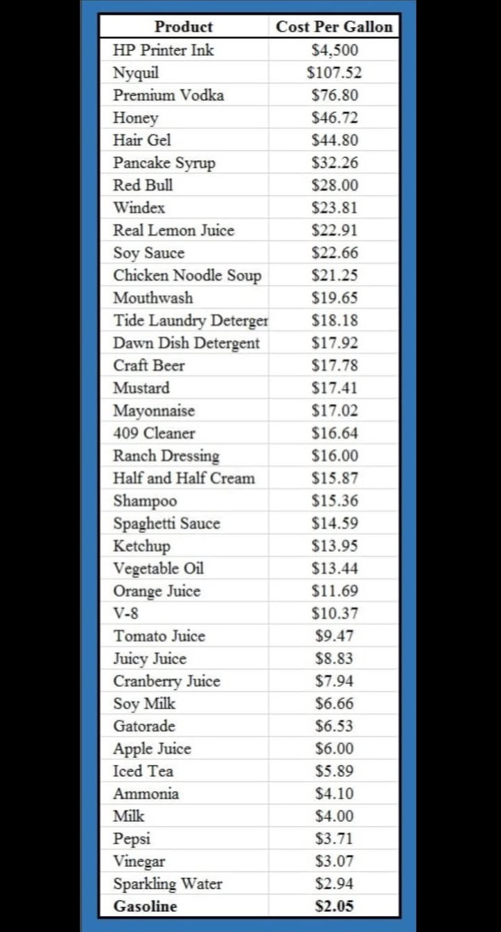 🛢️ Cost Per Gallon of ~39 Liquids
