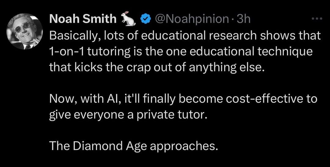 Turns out, 1:1 tutoring is the most effective form of education — and this is exactly what LLMs excel at.