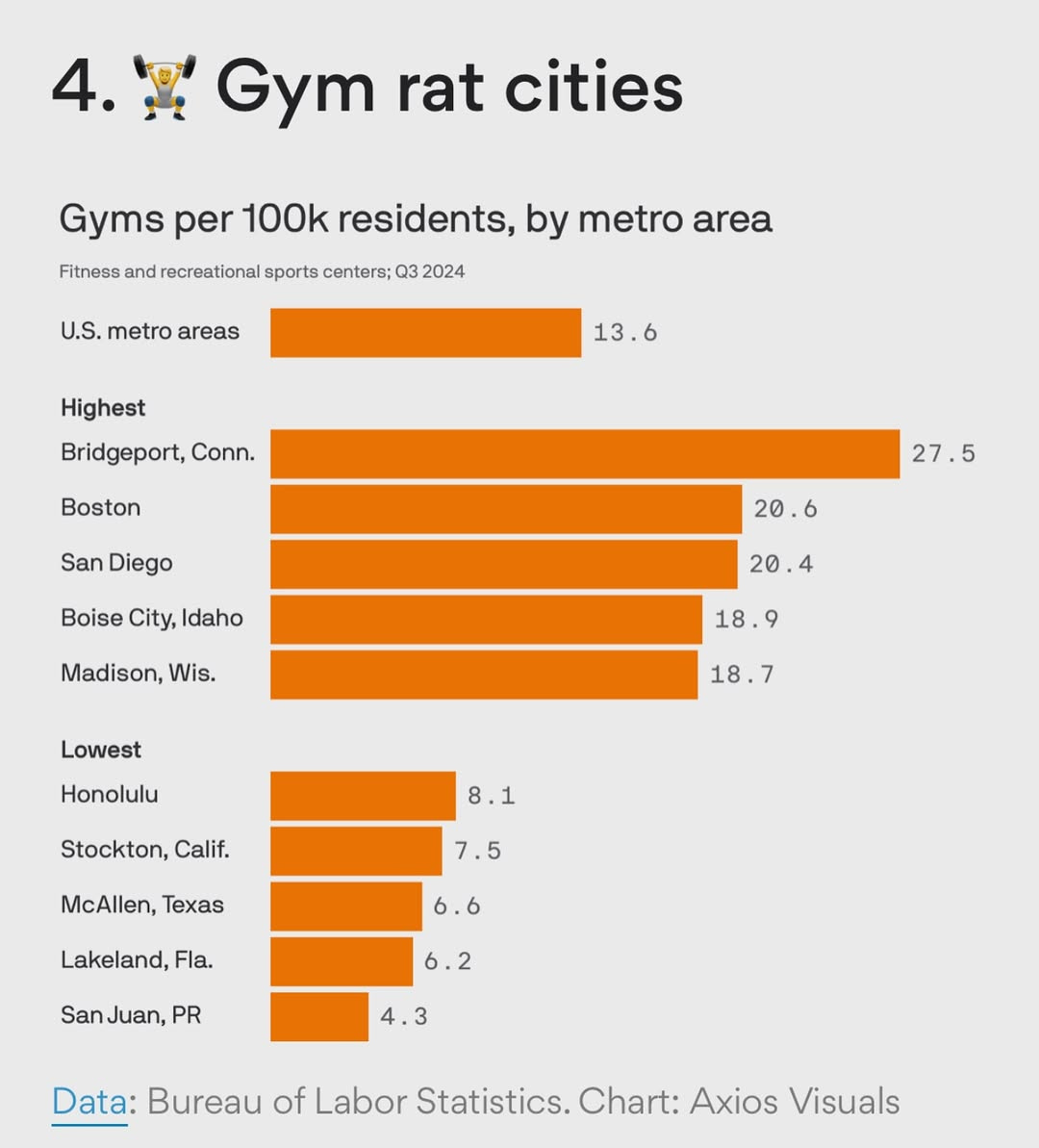 Cities With The Most/Least Gyms Per Capita; The Mysterious Disappearance of Serial Killers; Only 3% of Americans Had a Passport in 1988