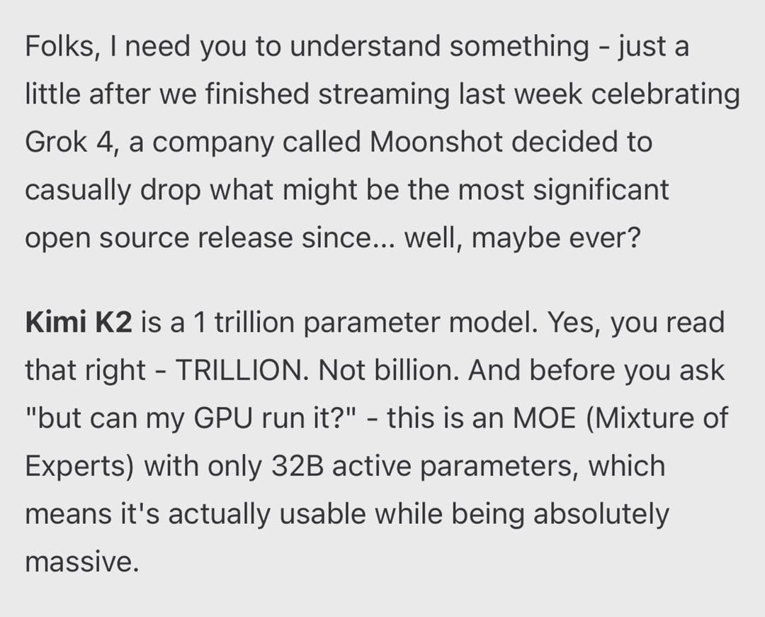 There’s a new open-source LLM in town. It’s called Kimi K2 and its numbers are really impressive.