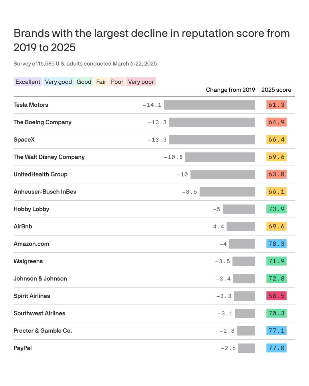📉 Companies With the Biggest Reputation Collapses (2019 to 2025)