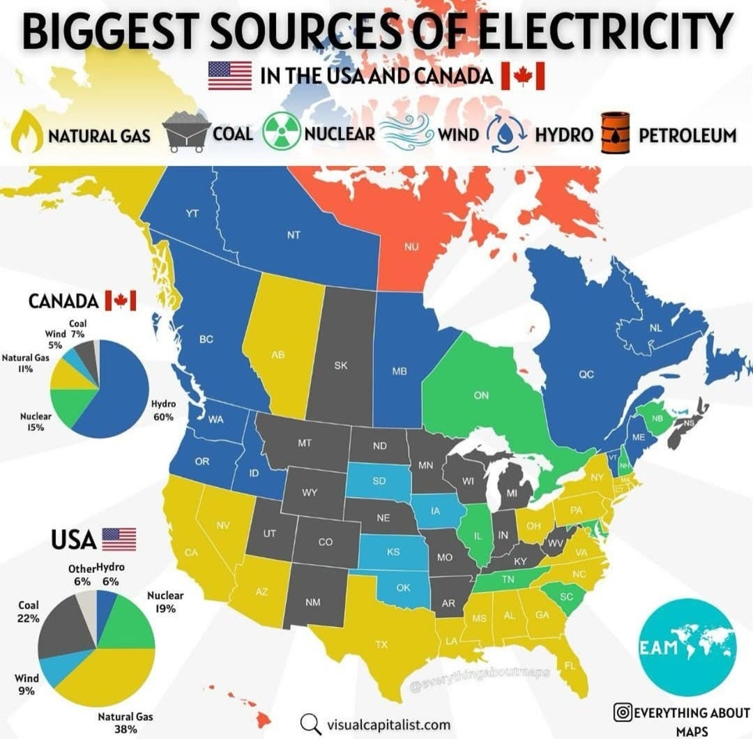 ⚡️ Biggest Sources of Electricity in the U.S. and Canada