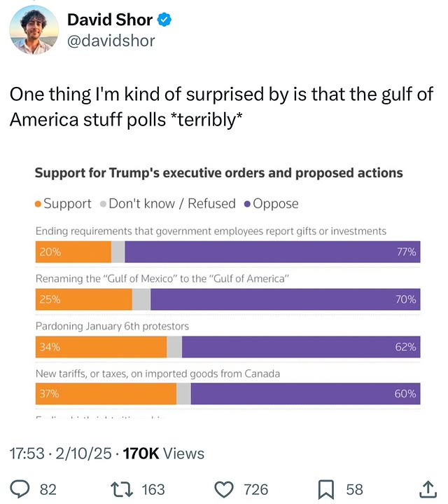 Only 25% of Americans support renaming the “Gulf of Mexico” to the “Gulf of America”.