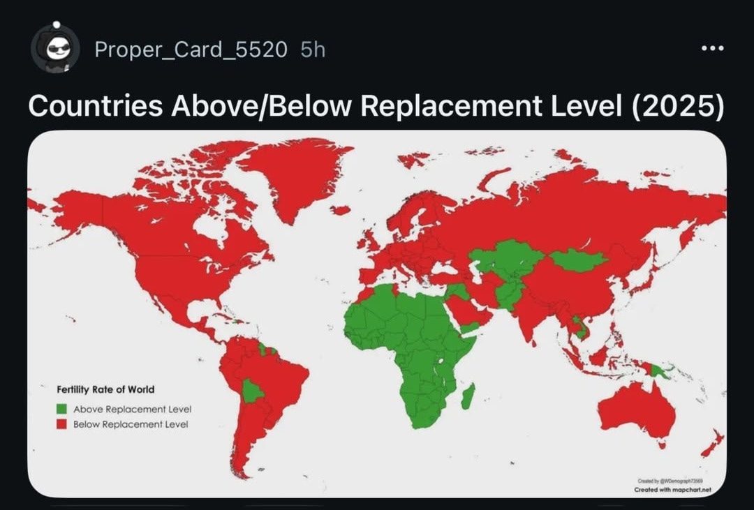 🗺️ Countries Above/Below Replacement Level (2025)