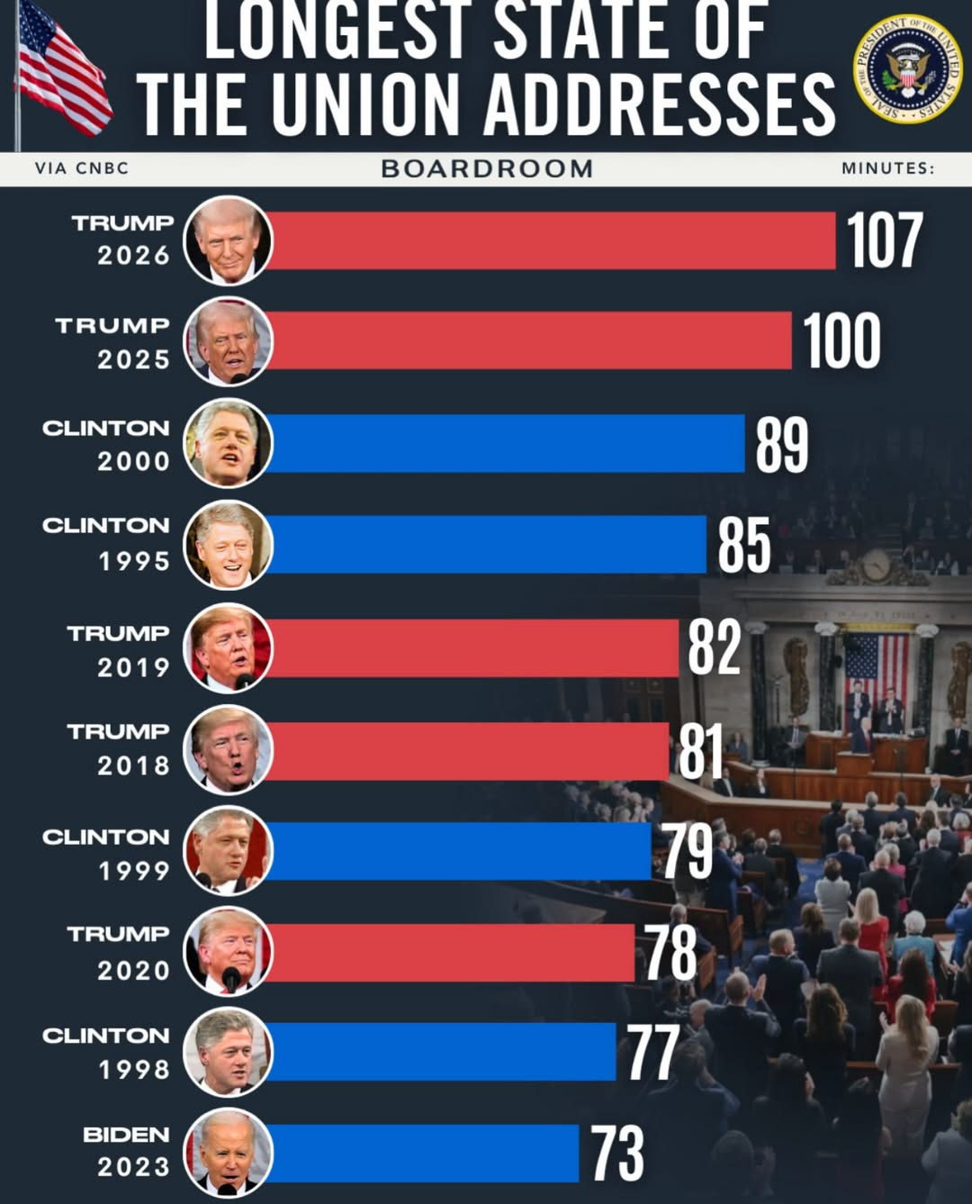 📊 Trump Sets New Record for Longest State Of The Union Address of All Time