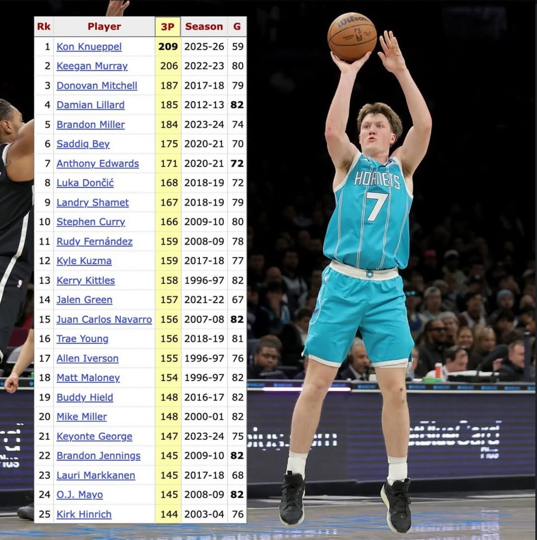 🏀 Rookie Kon Knueppel Leads NBA in 3-Pointers With the Triple!