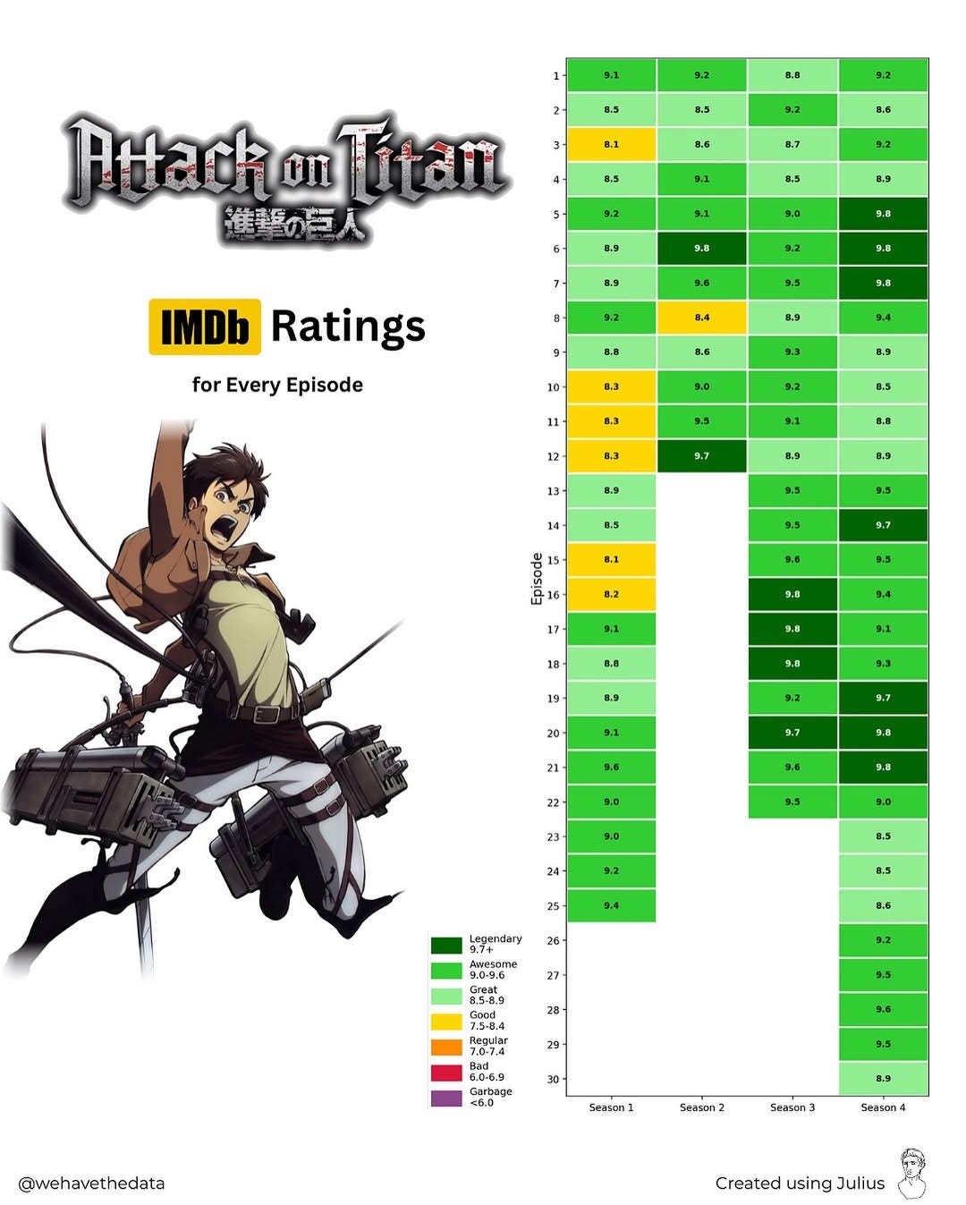 ⭐️ IMDB Ratings for Every Episode of Attack on Titan
