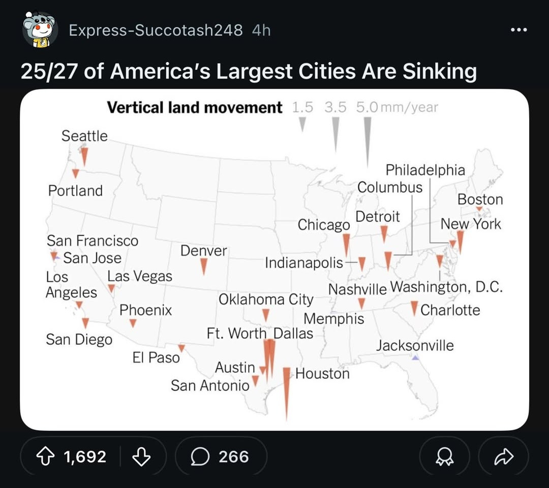 🇺🇸 25/27 U.S. Largest Cities Are Sinking