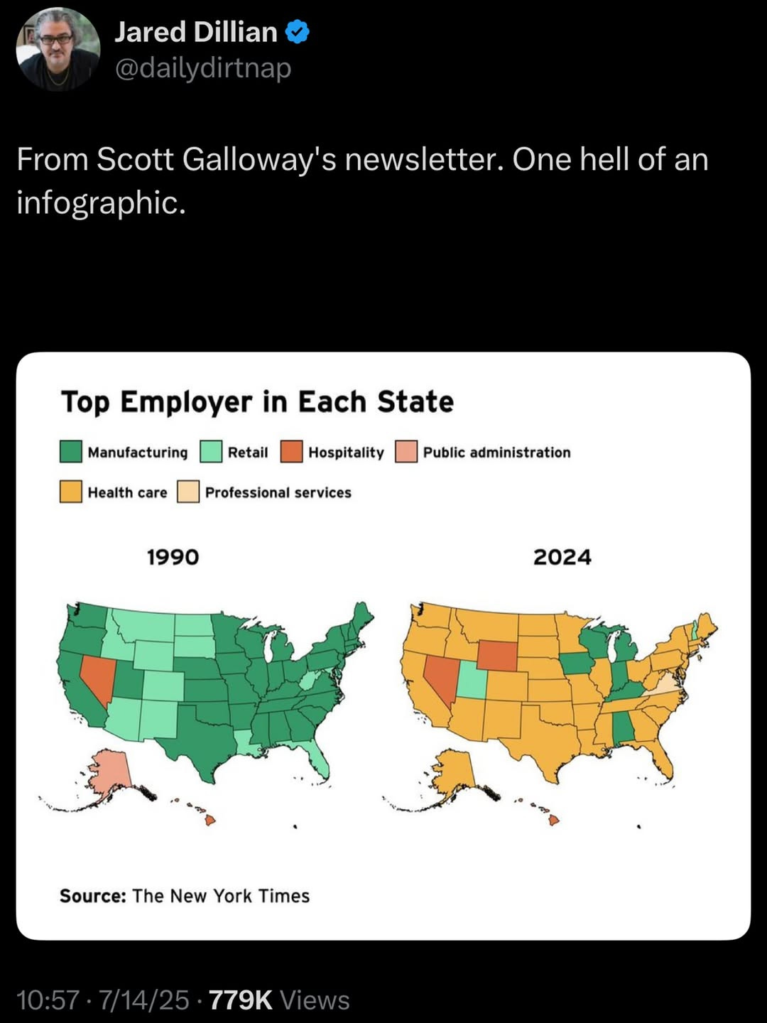 💼 The Shift from Manufacturing to Health Care in USA (1990 - 2024)