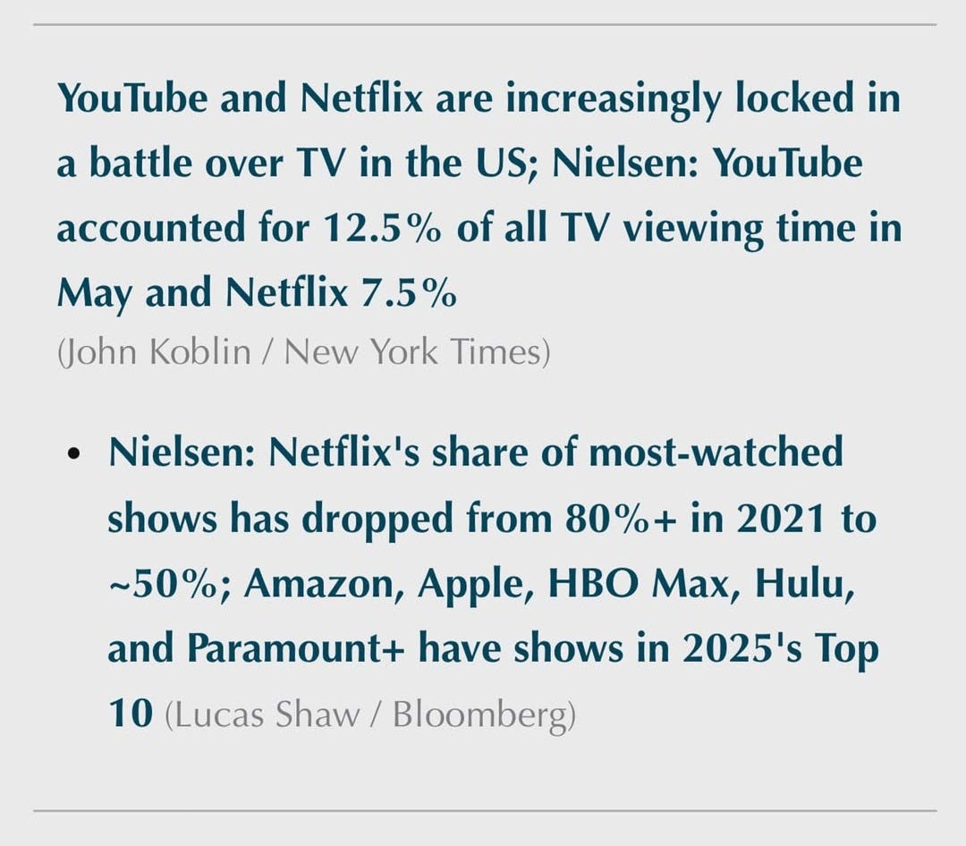 📺 YouTube and Netflix Are Locked in a Battle Over U.S. TV