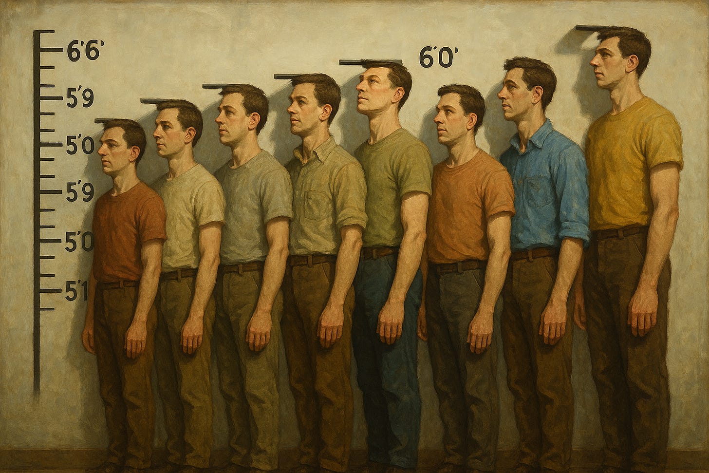 πββοΈ U.S. Male Height Distribution (measured vs. reported)