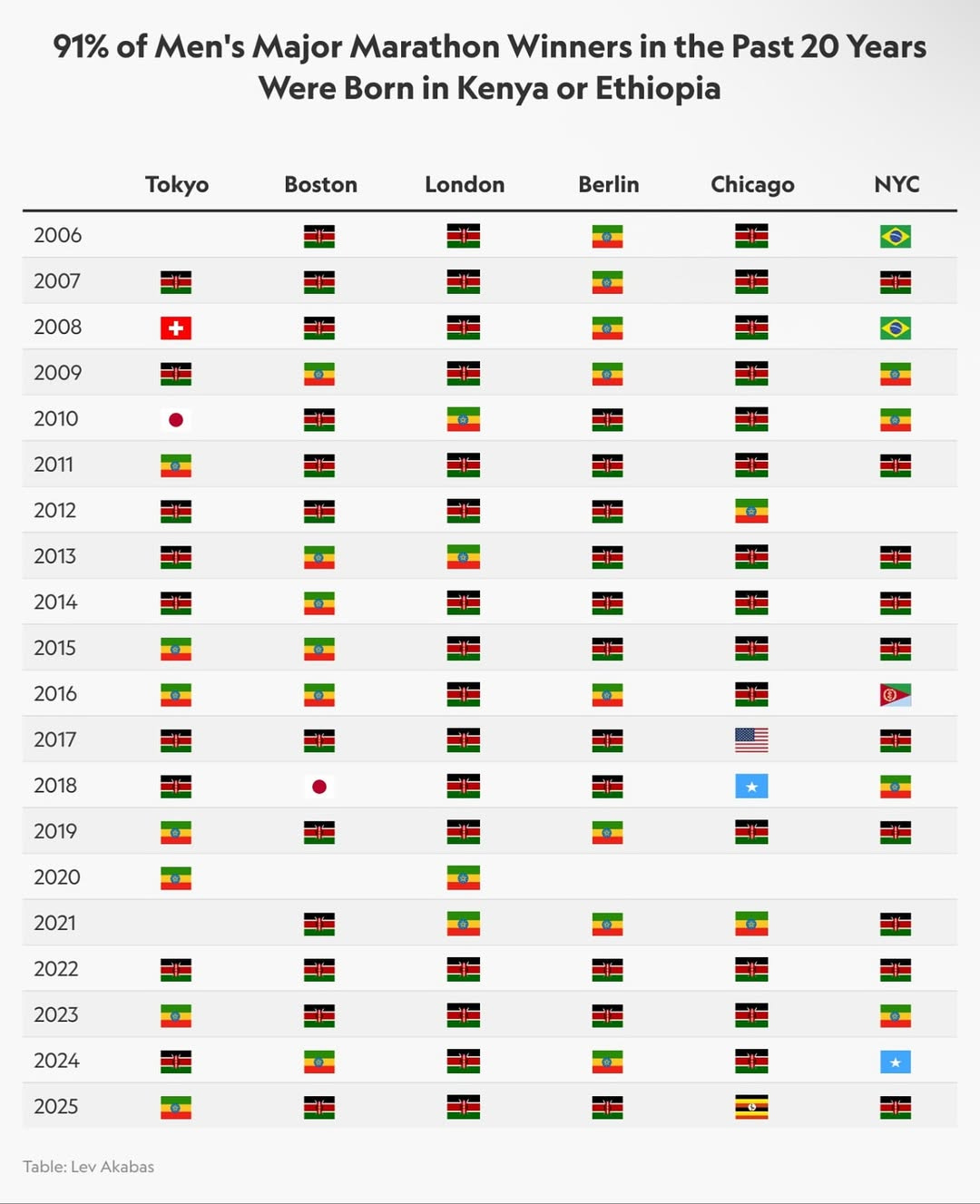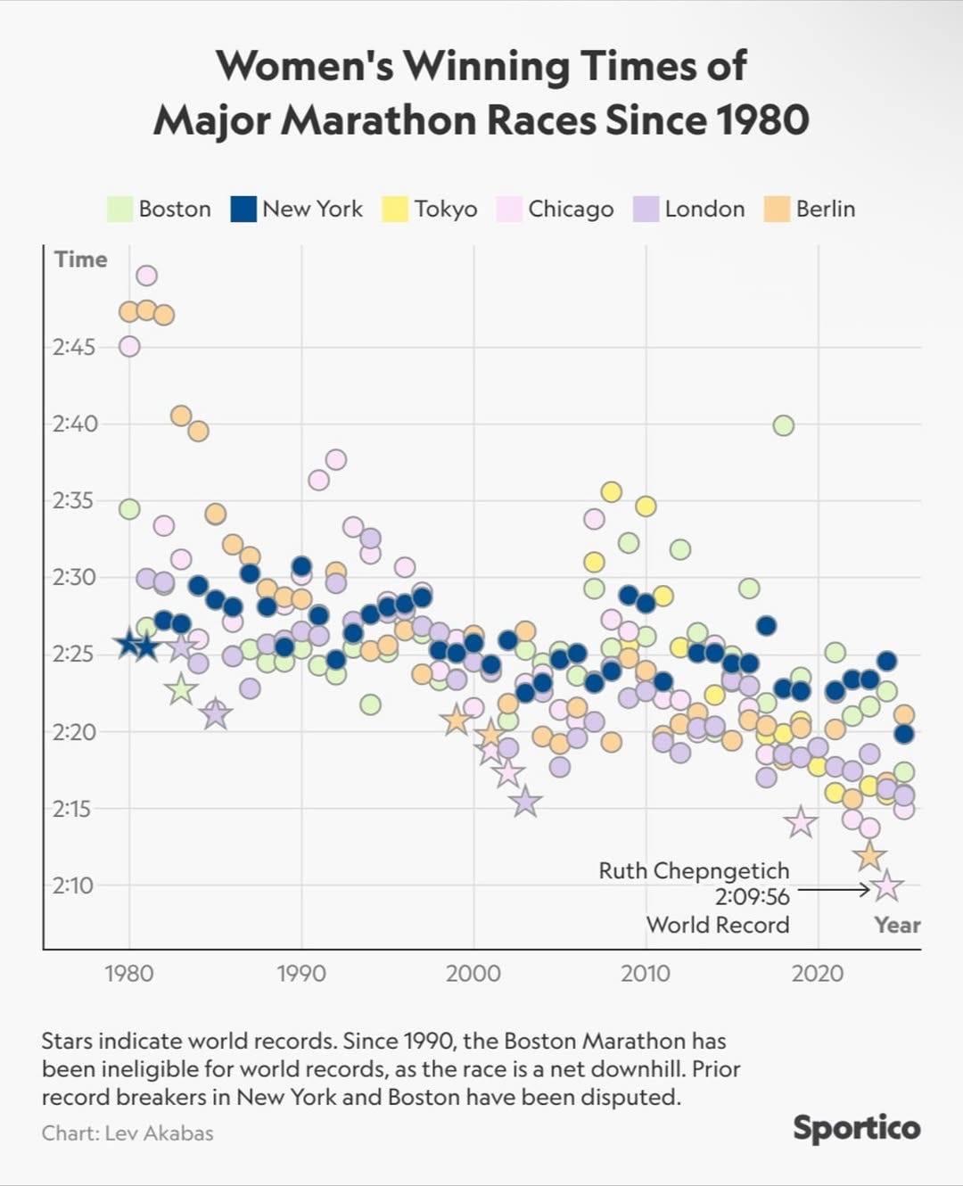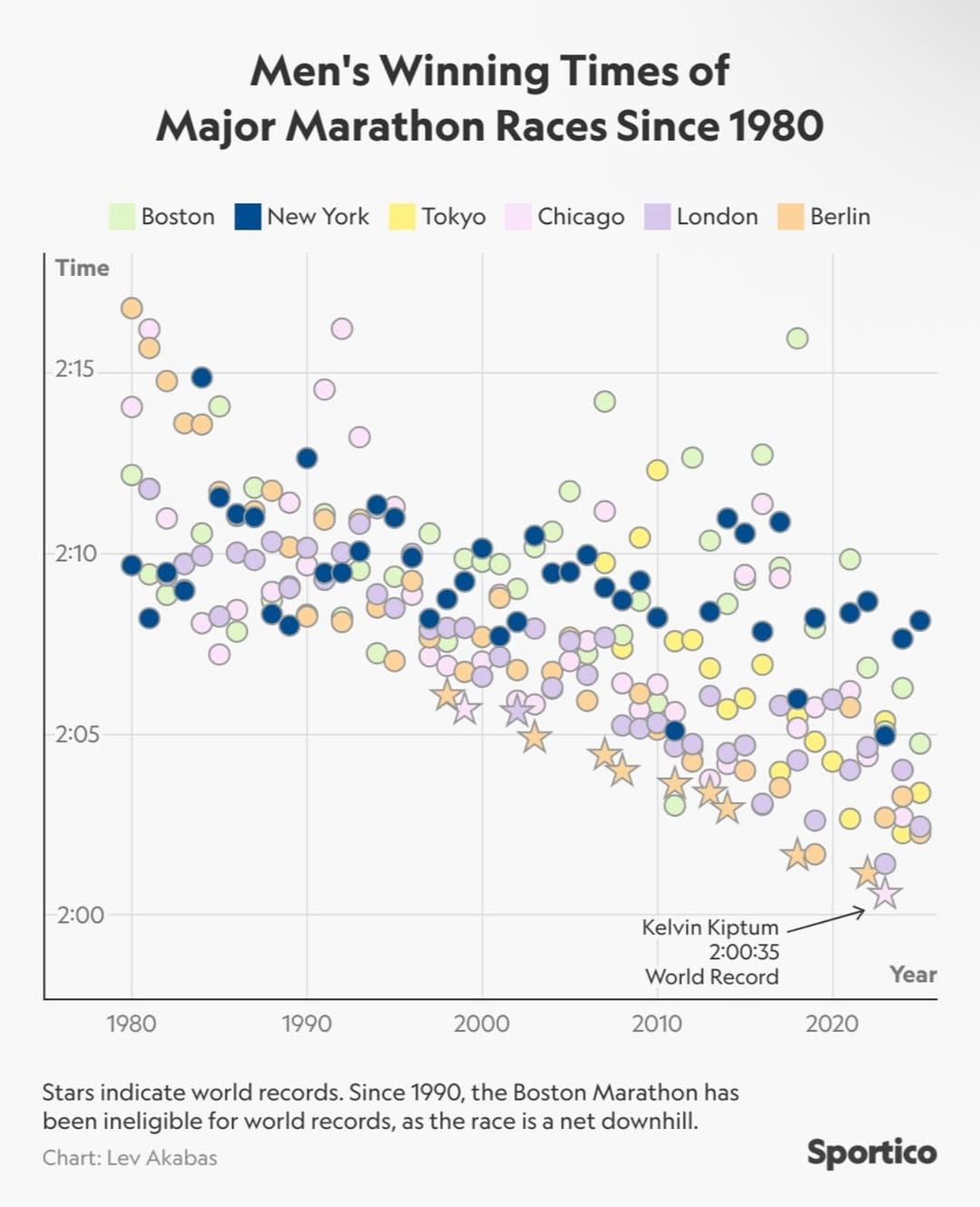 π Men and Womenβs Winning Times of Major Marathon Races Since 1980
