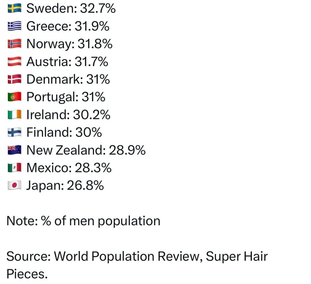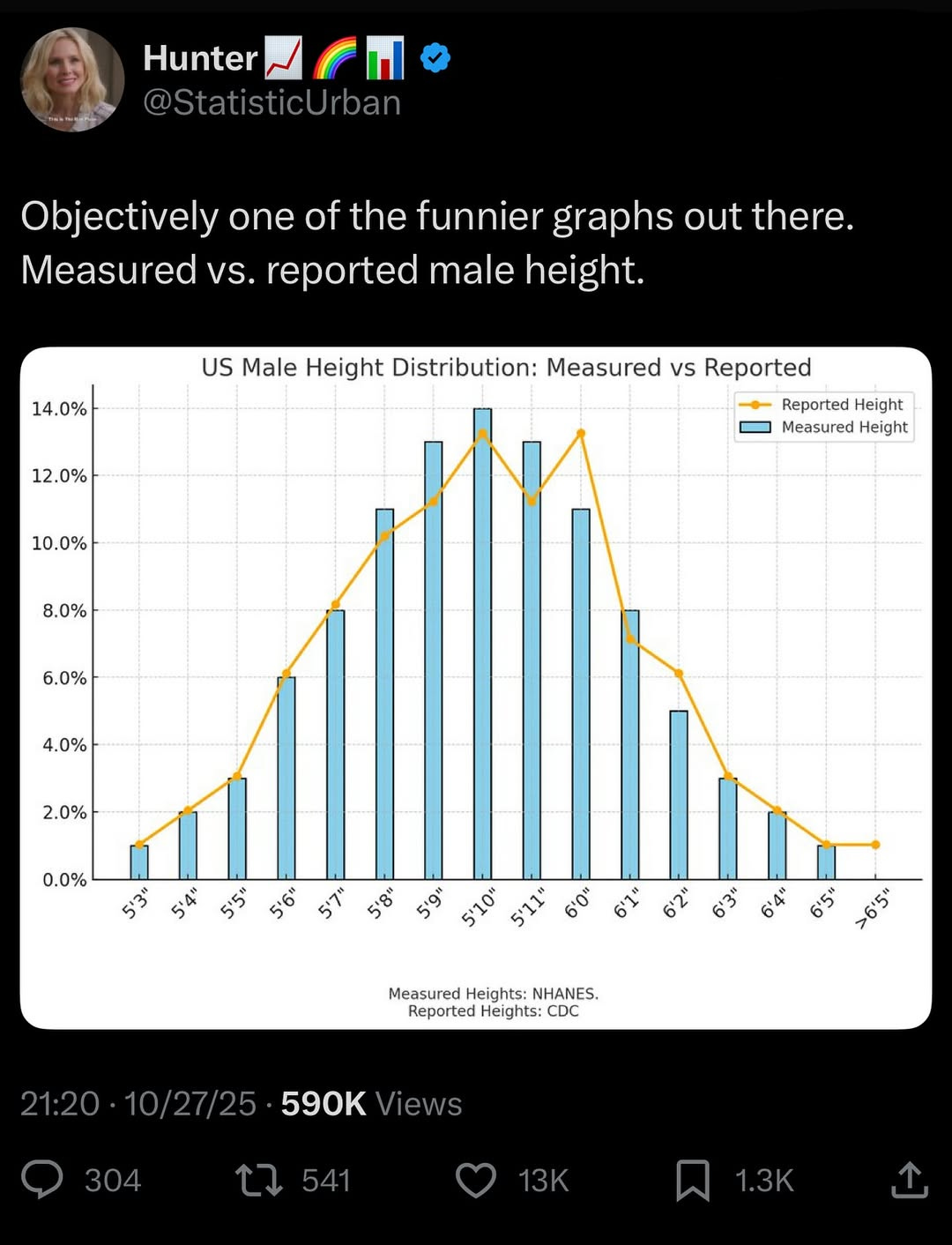 π€₯π Male Height Distribution (Measured vs. Reported); NYC Mayoral Election Data; Percentage of Men Who Go Bald by Country