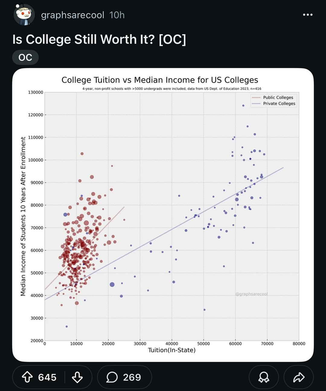 🏫 College Tuition vs. Median Income for U.S. Colleges