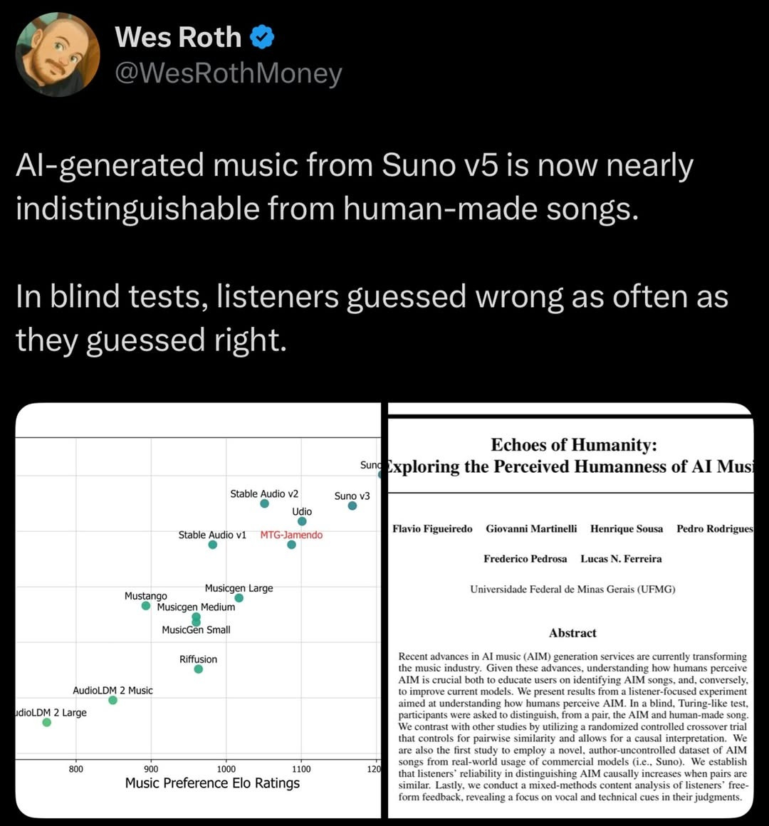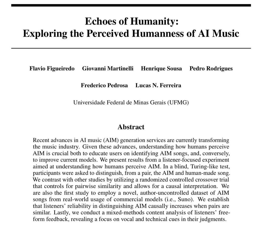 🤖 AI-Generated Music Now Indistinguishable from Human-Generated Music