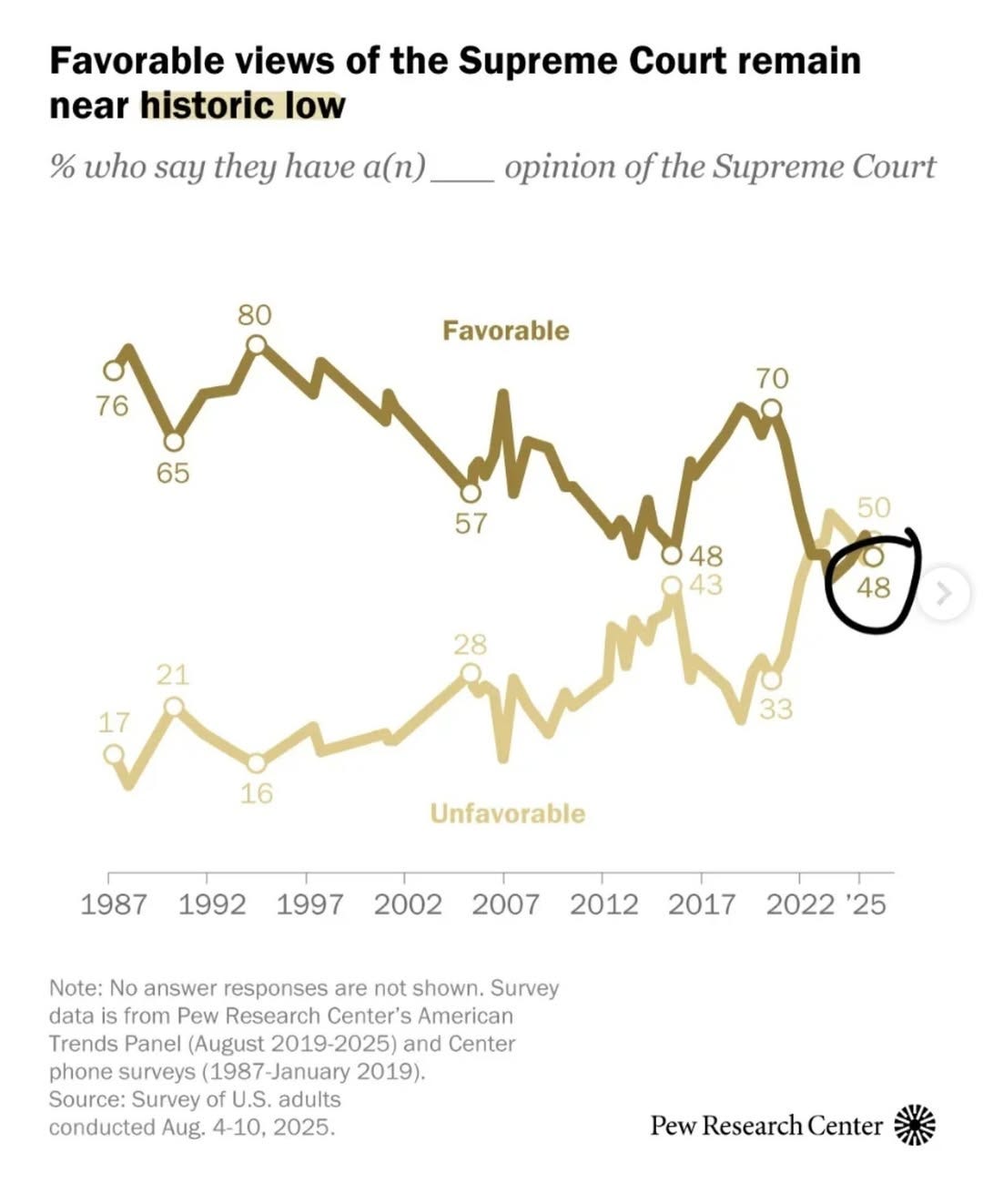 📉 Favorable Views of the Supreme Court at Near Historic Low