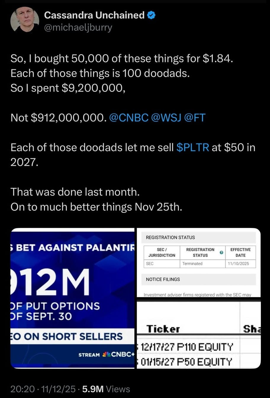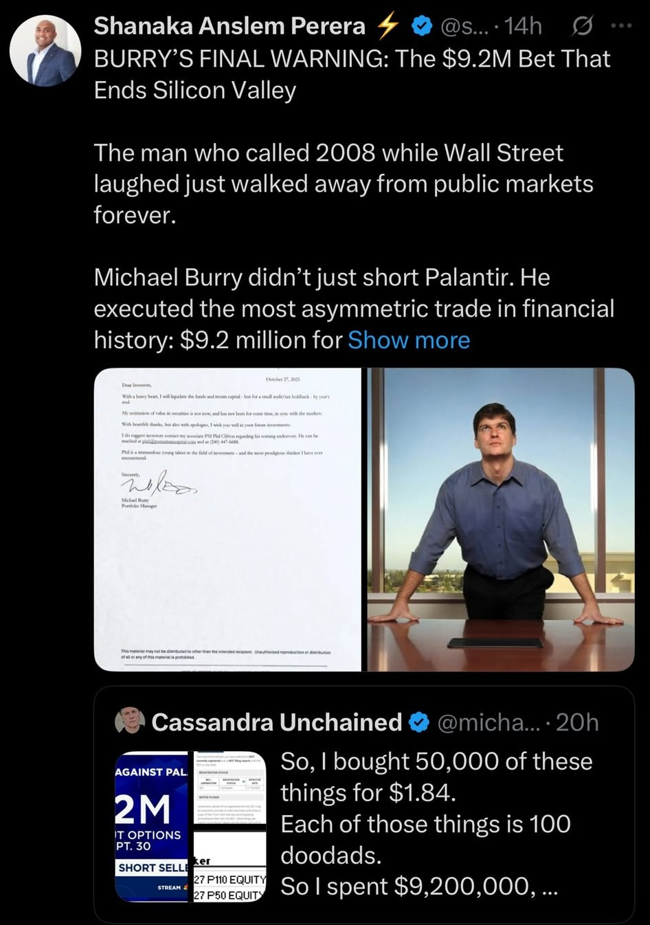 💰 Michael Burry’s $9.2M Bet Against Palantir