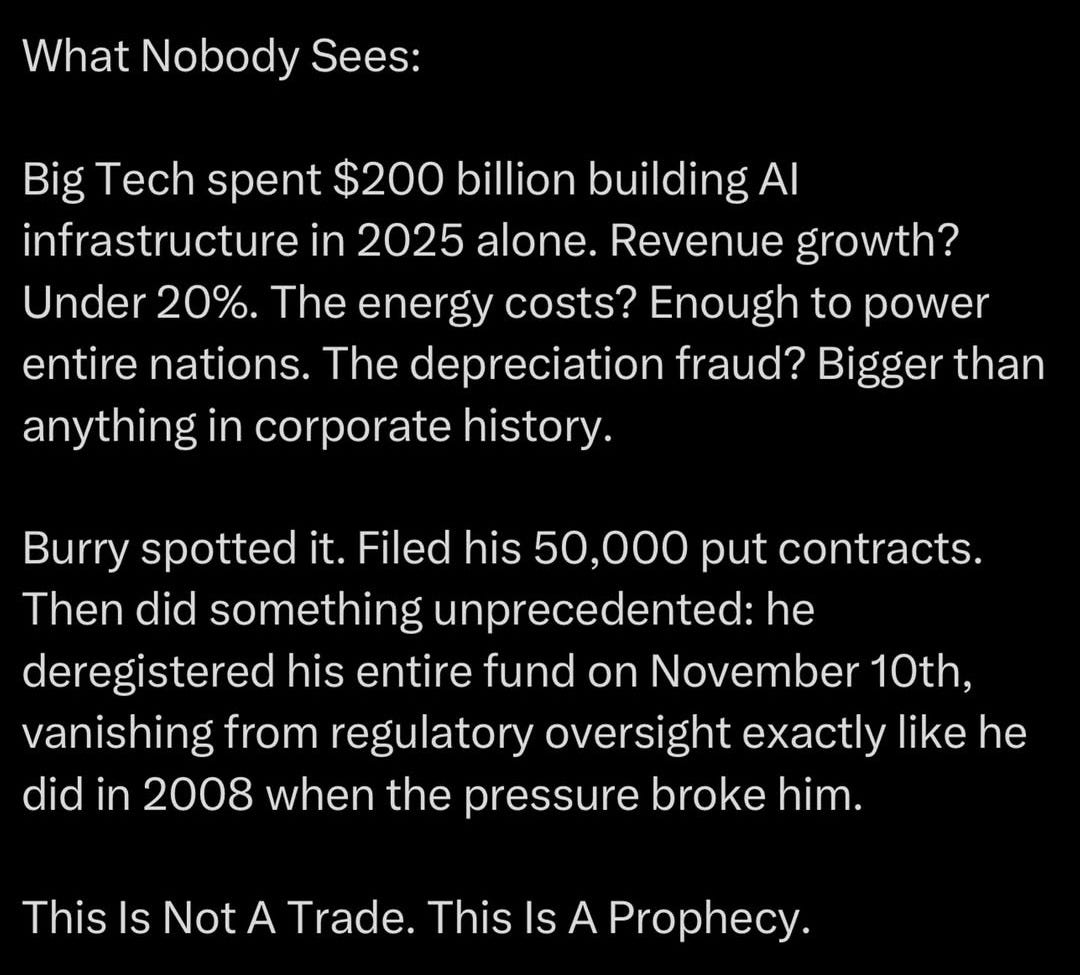 Michael Burry AKA “Cassandra Unchained” is making waves on twitter again.