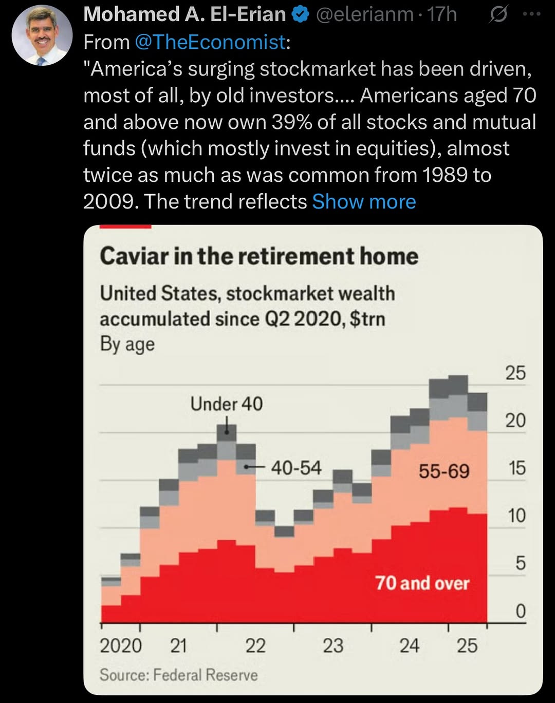 📈 Americans Aged 70+ Now Own 39% of All Stocks & Mutual Funds