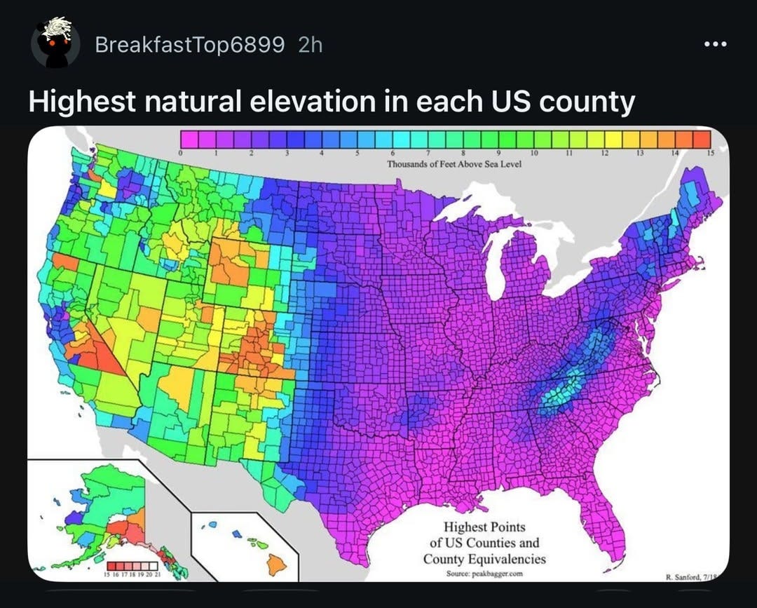 🇺🇸 Highest Natural Elevation is Each U.S. County