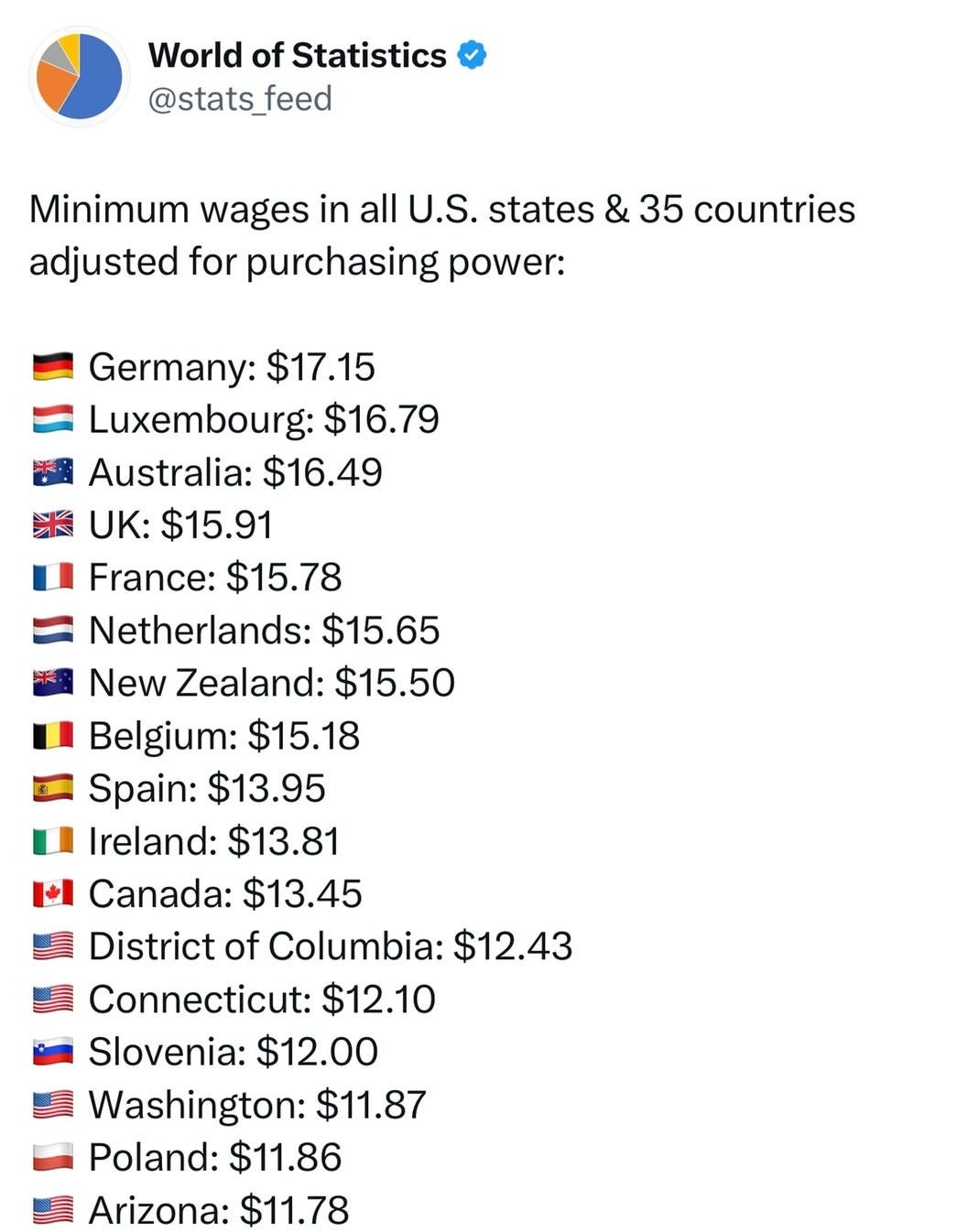 💵 Minimum Wages in all U.S. States & 35 Countries (Adjusted for PPP)