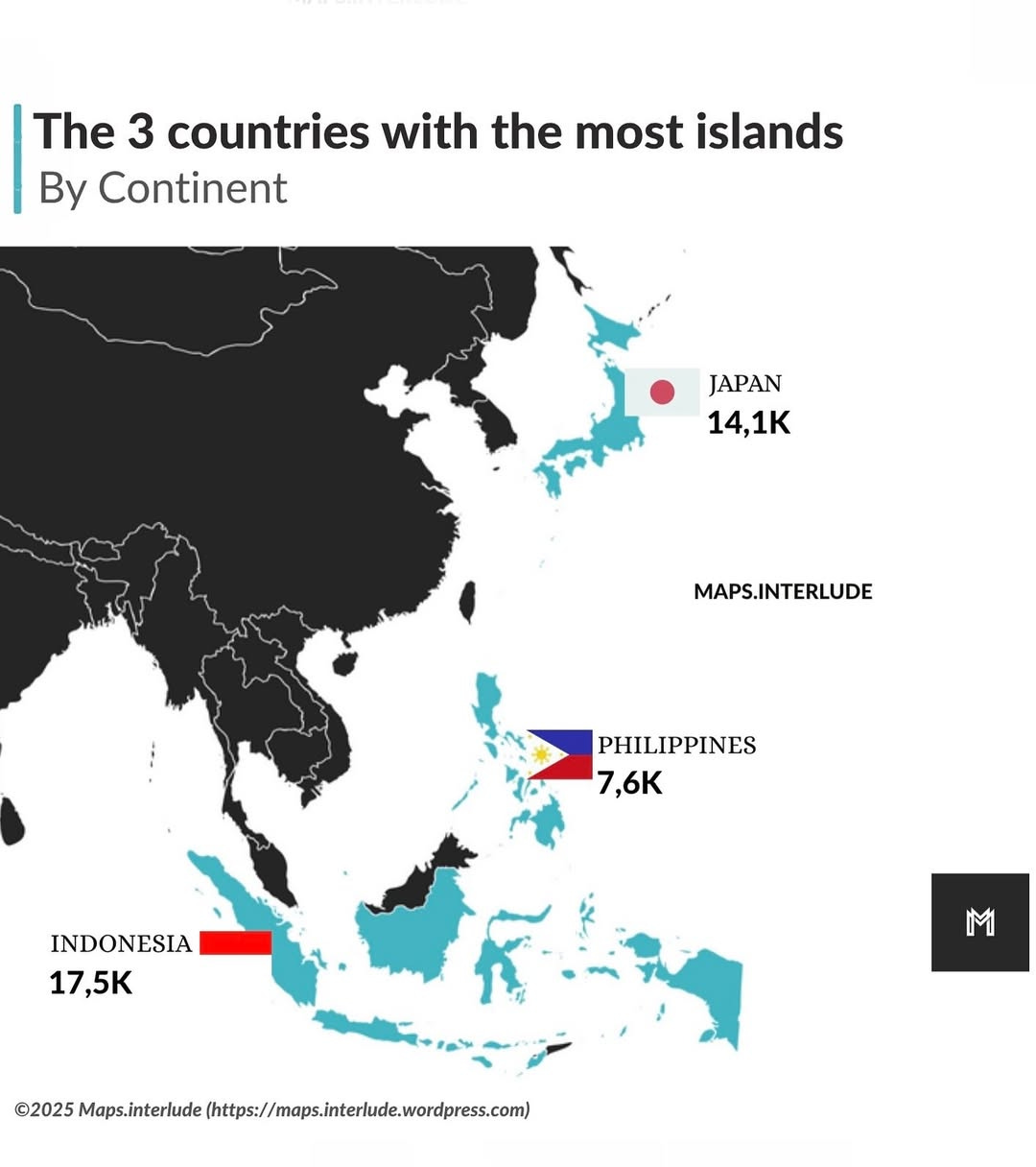 🏝️ 3 Countries With The Most Islands in Each Continent