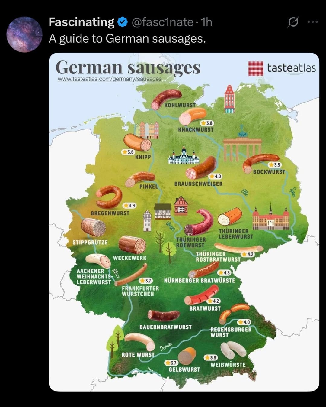 💵 Minimum Wage Around the World; 100 Million Years of Alabama; 21 Types of German Sausage: MAPPED